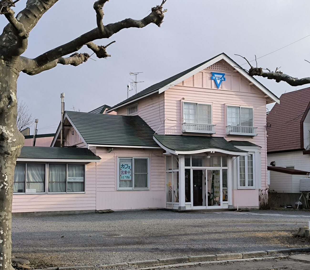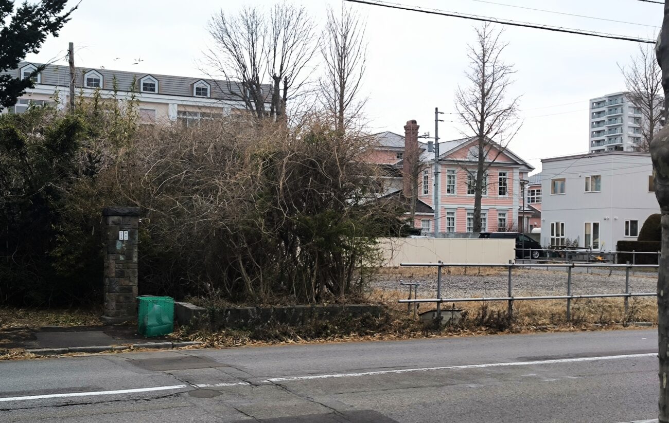 店を出ると、向かいの遺愛高校のあたりにも、似た雰囲気のピンク色の建物があります。