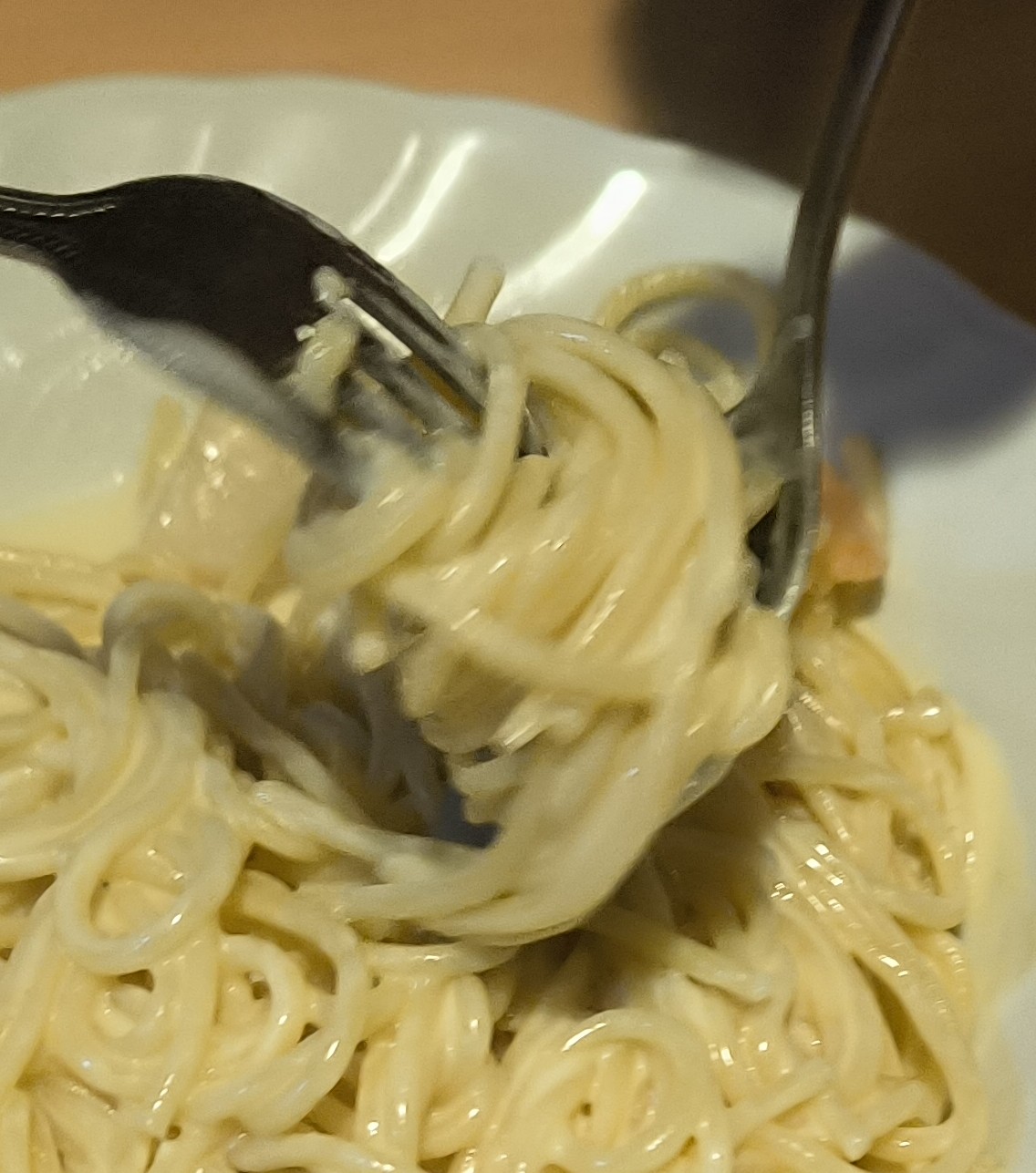 パスタは、フォークをくるくる回す楽しさもありますよね。(ちなみにGさんはフォークくるくるが苦手なんだとか😂)
