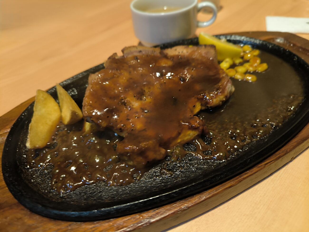 香ばしく焼かれたポークソテー。肉の厚みはあるのに柔らかく、表面の焼き色と中身のジューシーさのバランスが絶妙。