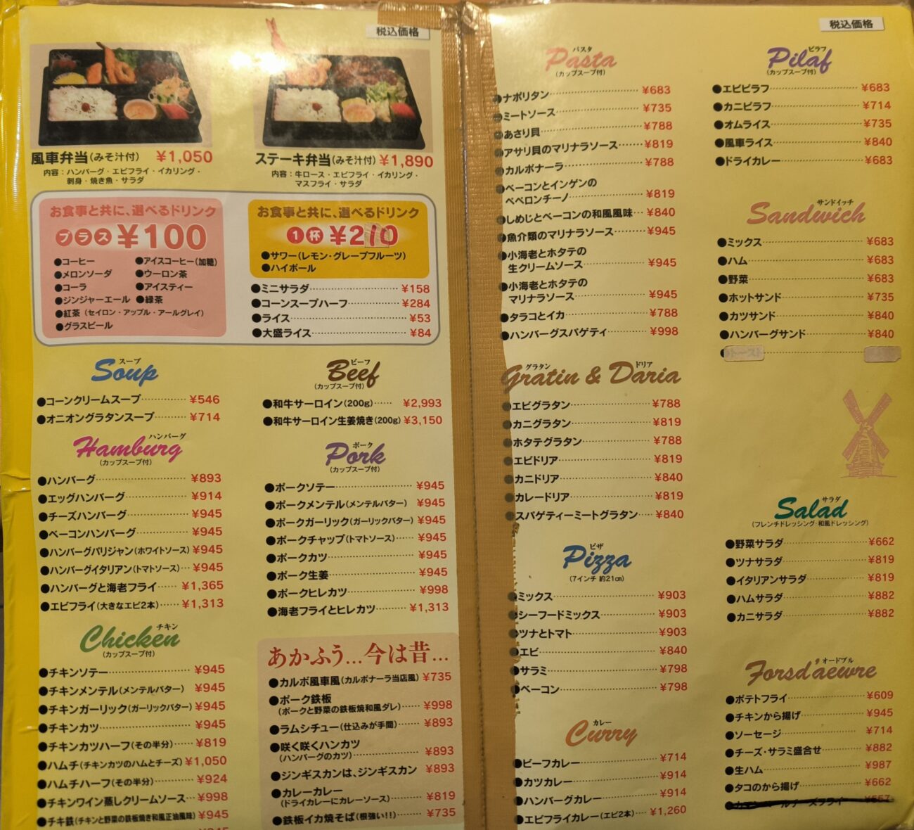 このお店、地元の人にも愛されている “洋食&喫茶 赤い風車” さんで、懐の広い使い勝手の良さが魅力です。