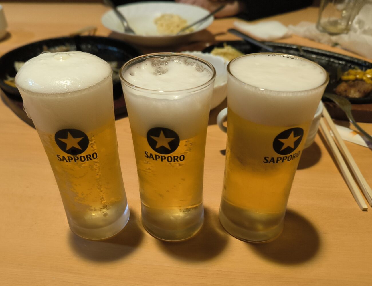 食事の一皿につき一杯だそうで、3品を注文していたので3個の小ビールがきました。