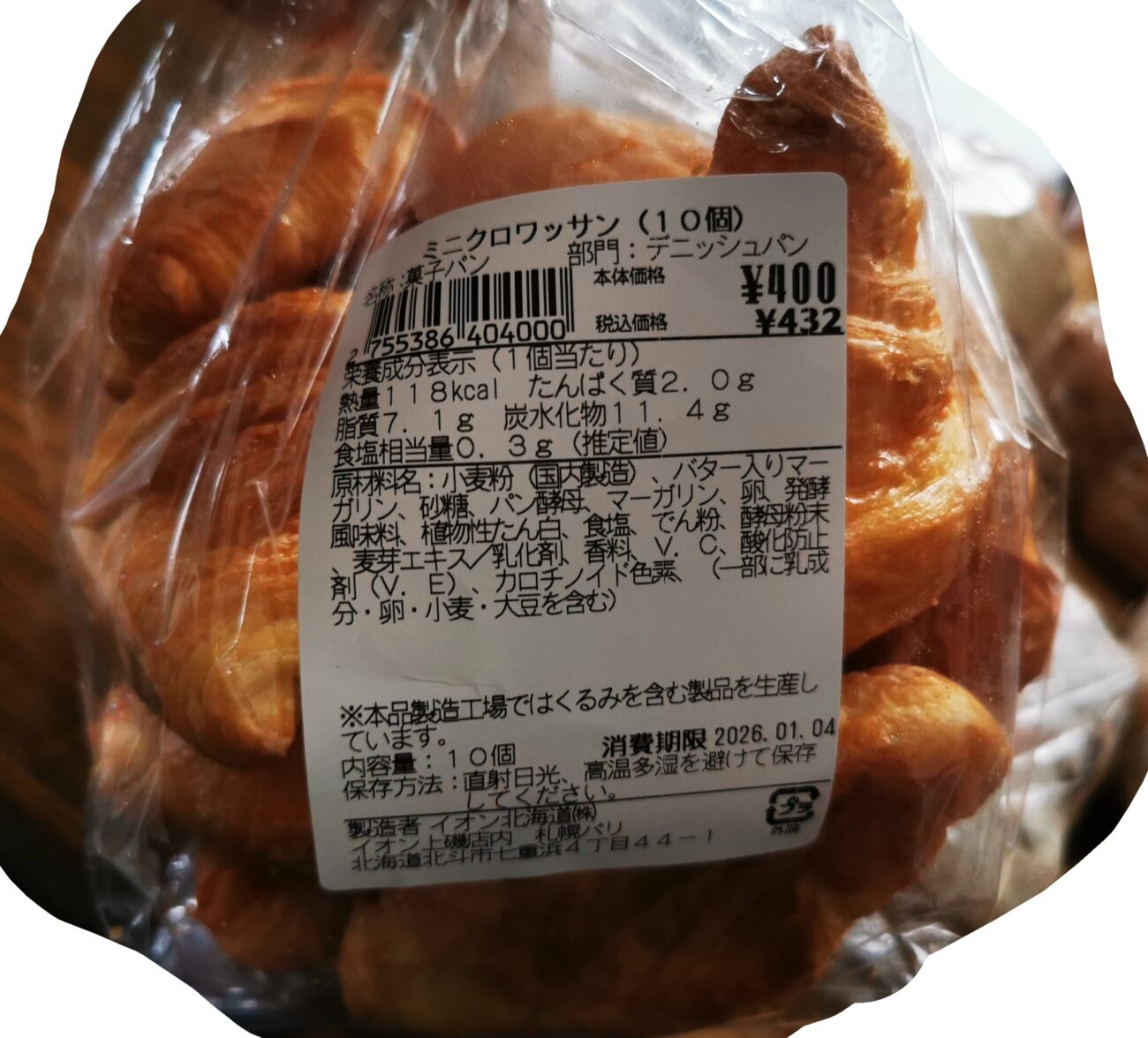 クロワッサンは、初売りで1個増量でした。