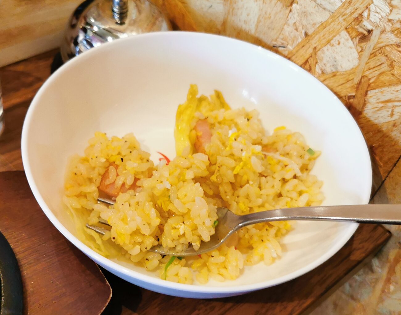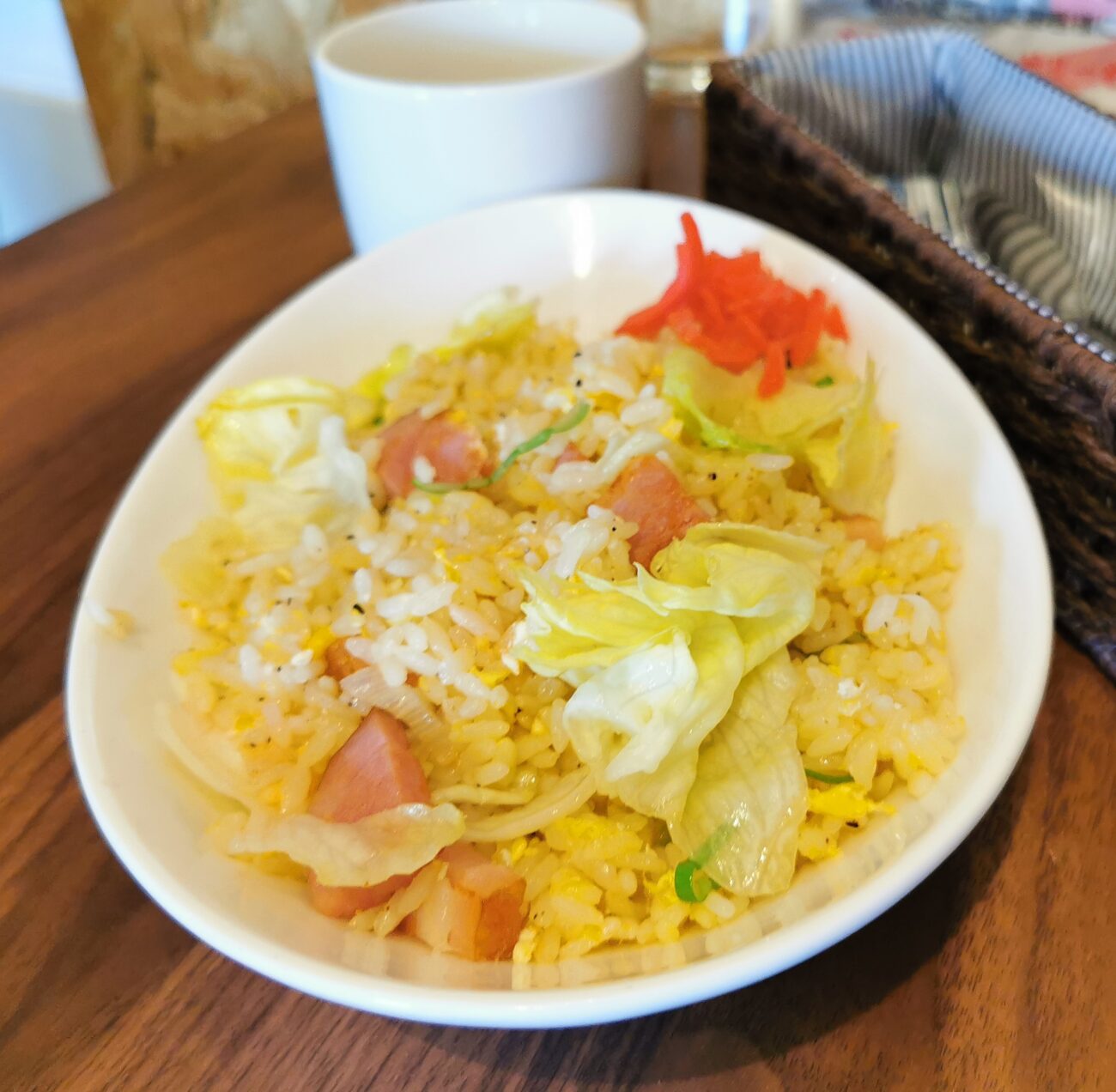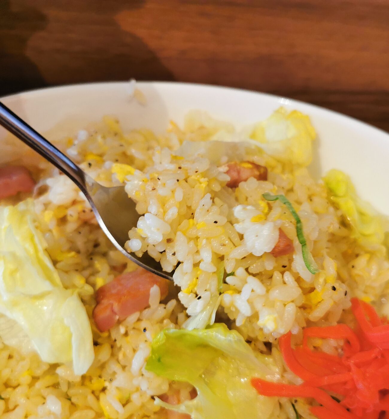 このケンケンチャーハンは、レタスとベーコンの洋風チャーハンのような感じです。