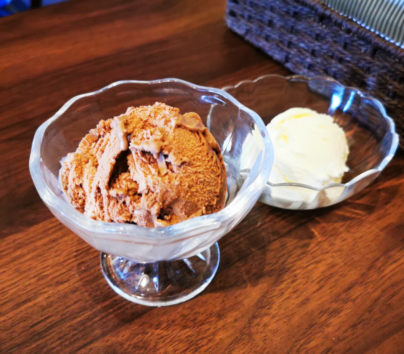 濃厚なチーズ料理のあとに、ひんやり甘いバニラアイスは最高の〆。これはうれしいサービスです。