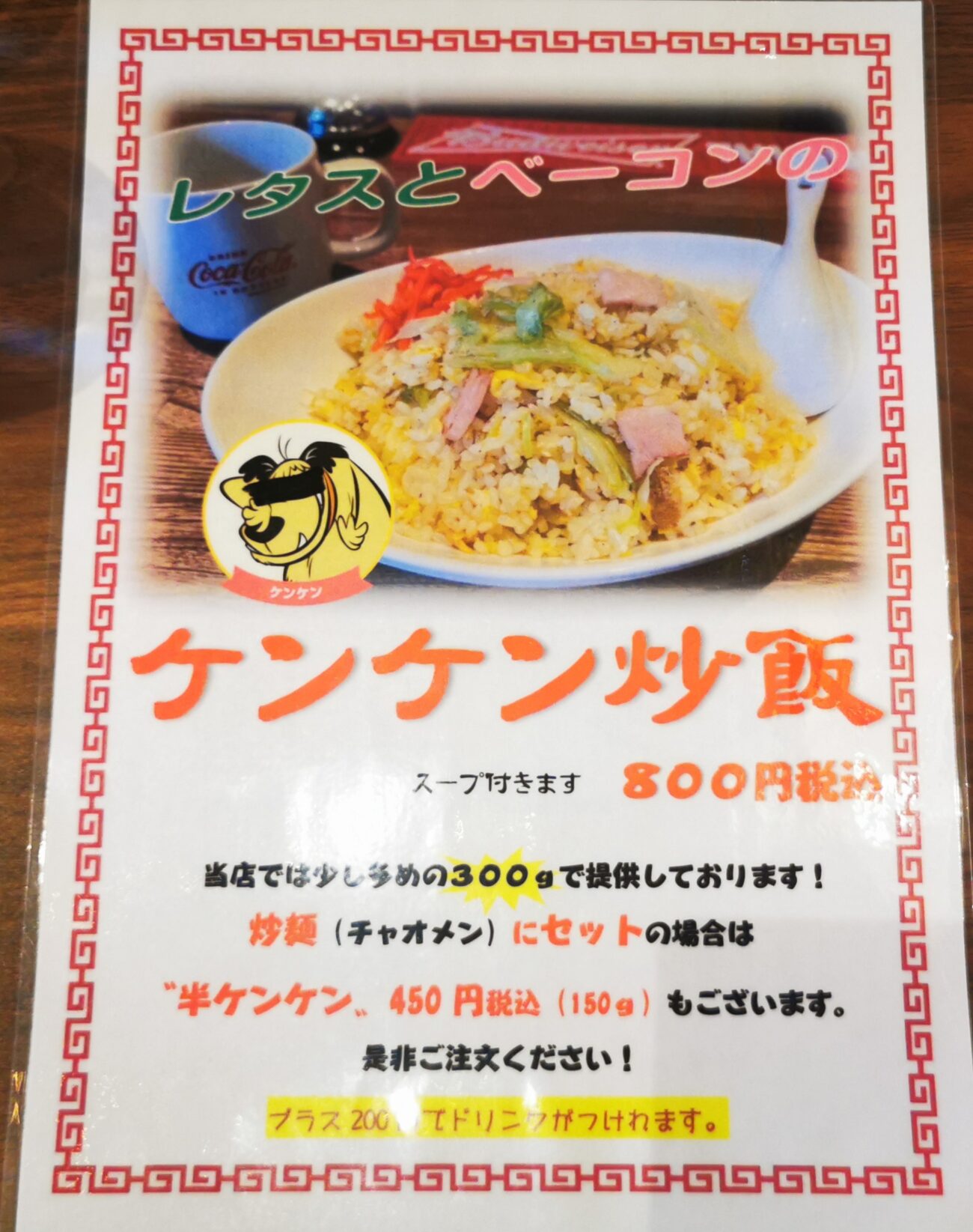 このようなメニューが2種類あり、「ケンケンチャーハン」というものを注文しました。
