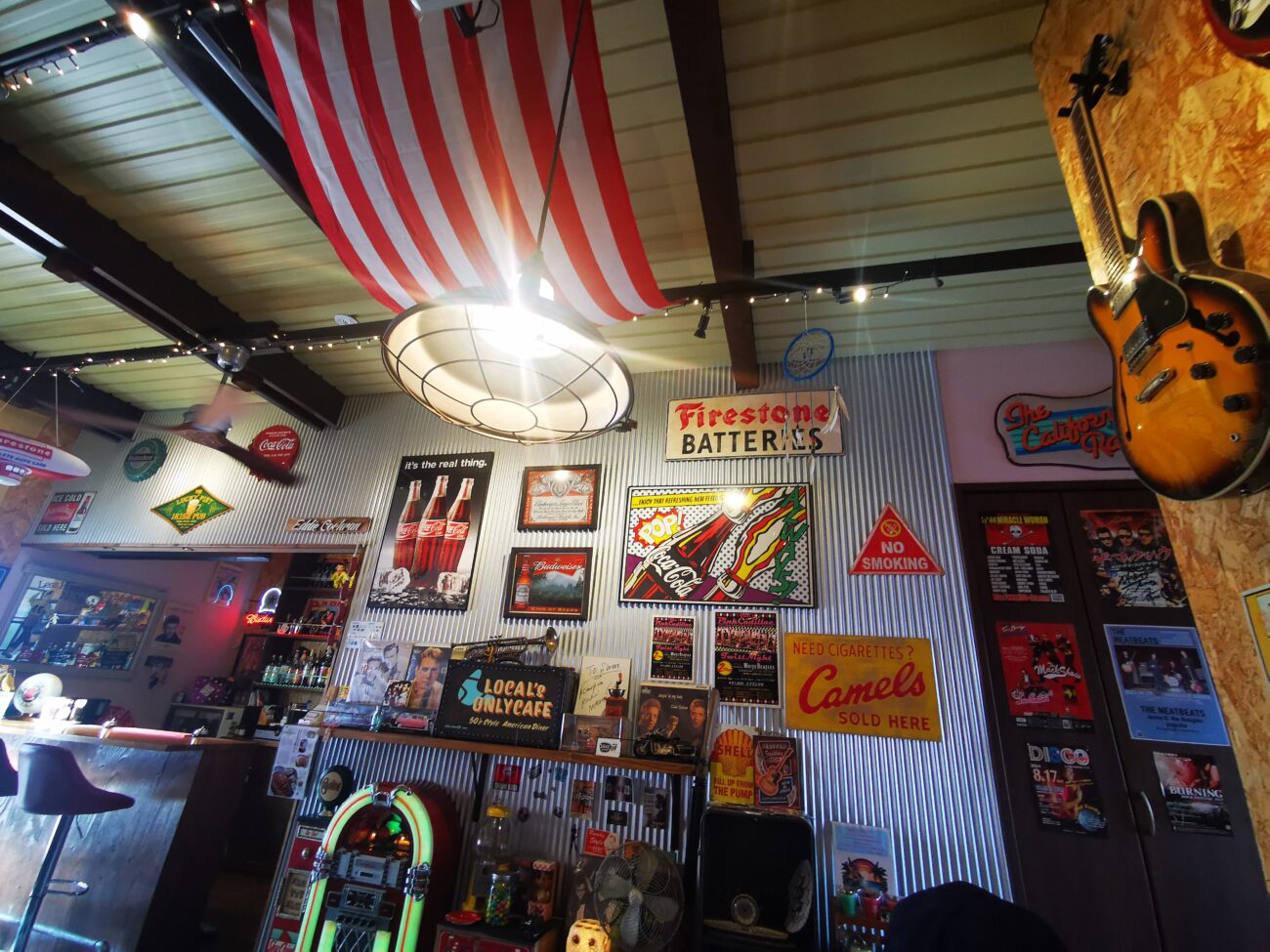 ここがいいのは、壁に飾られているステッカーやポスター、ロゴ類です。