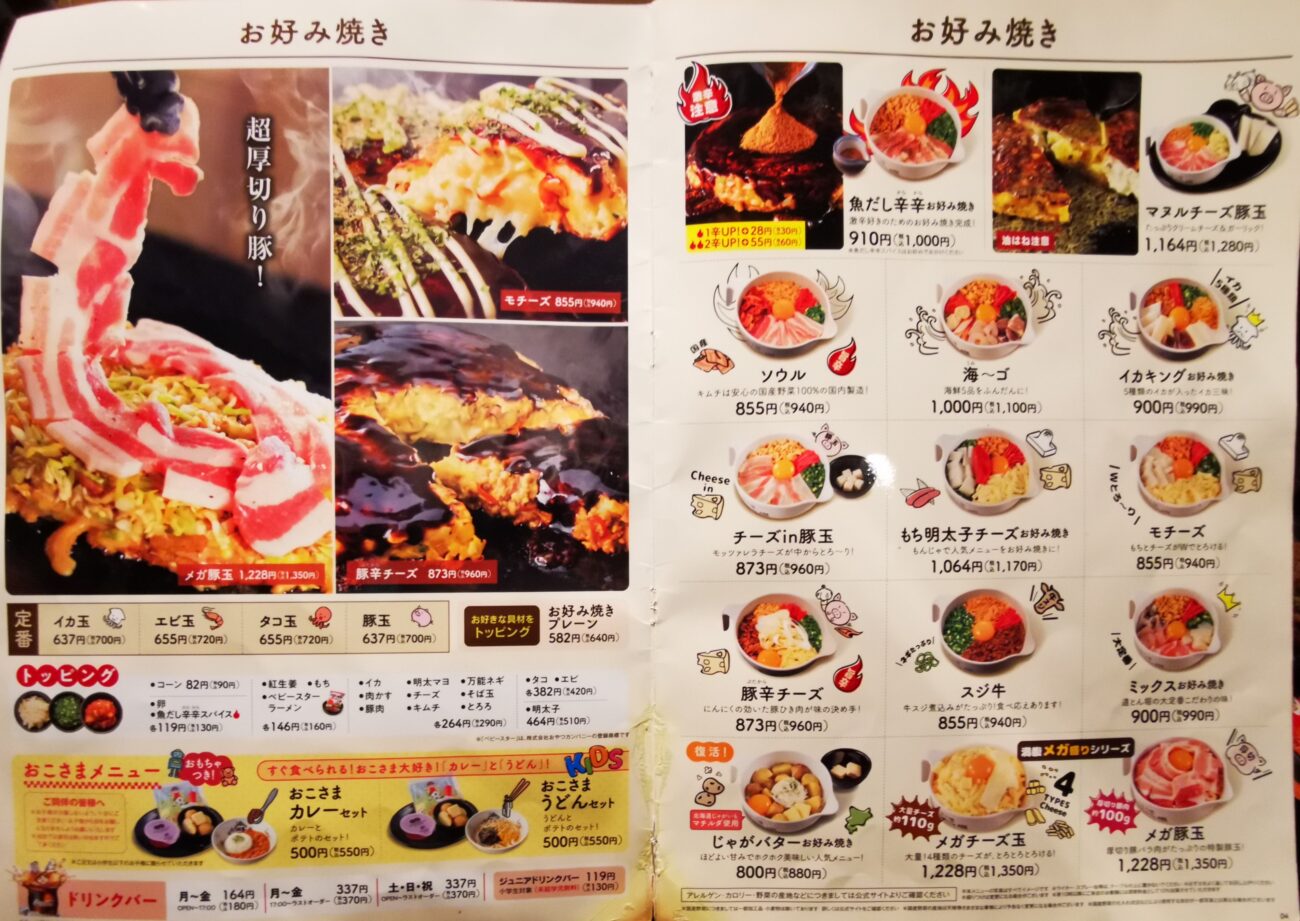 お好み焼きのメニュー