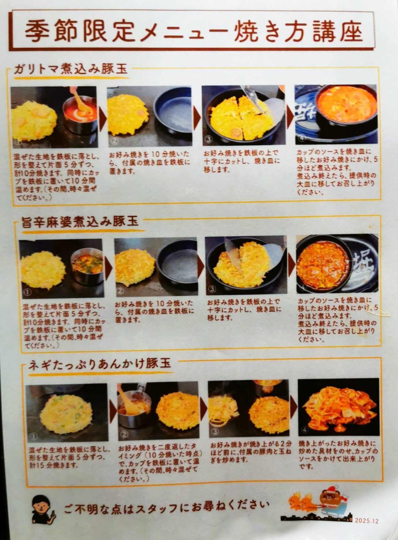 季節限定メニューの焼き方の説明です。