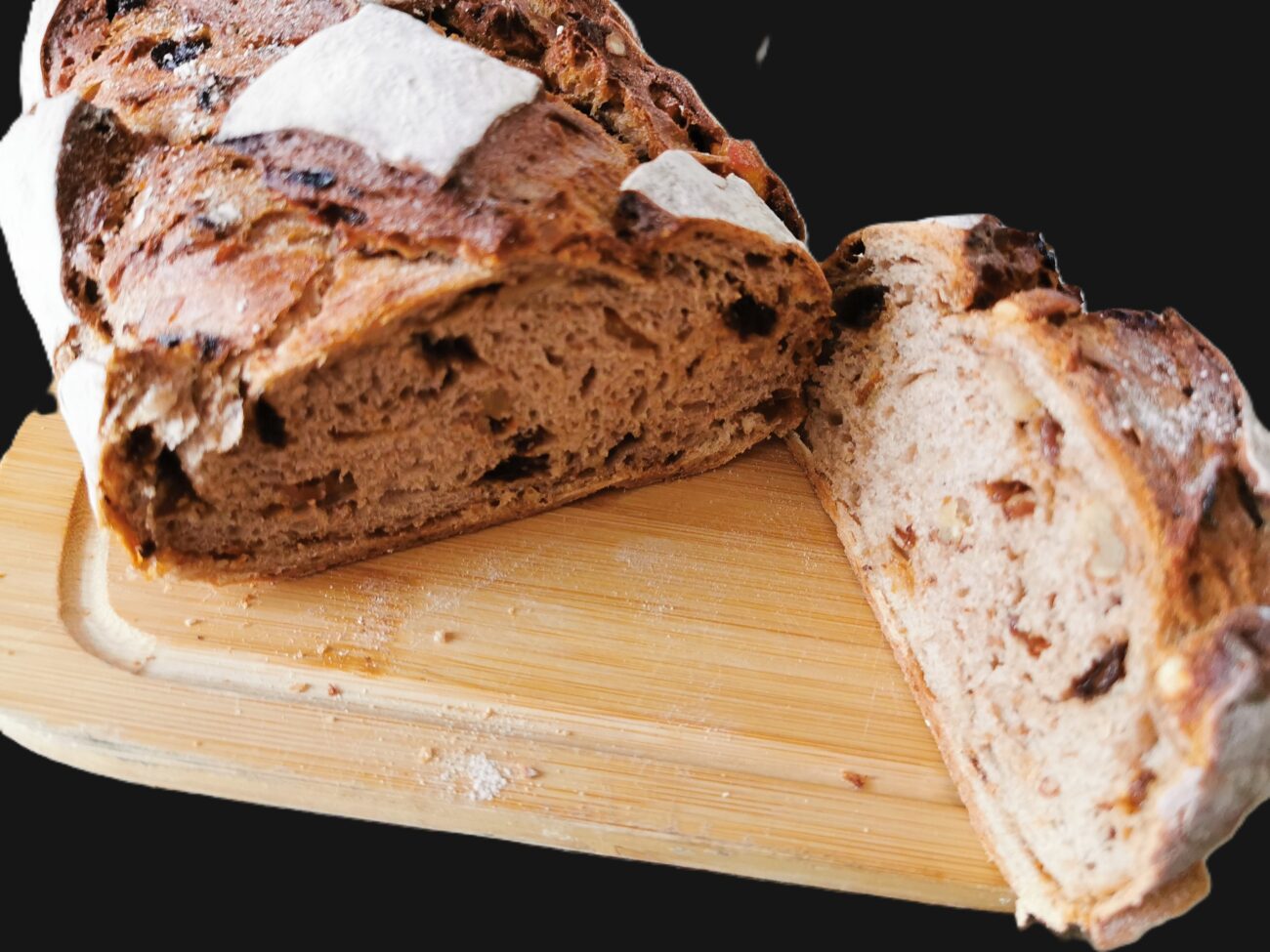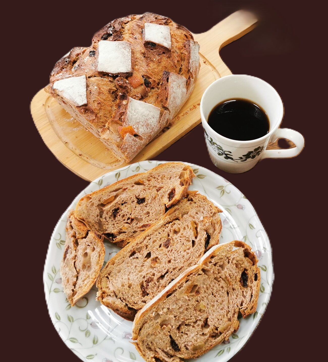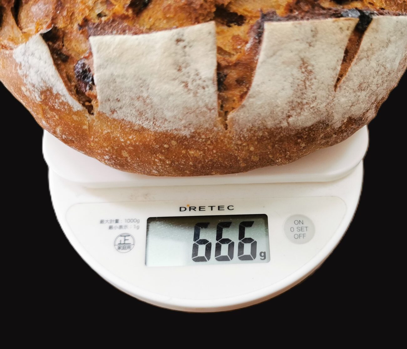 まだほんのりと温かさが残っていて、カットした瞬間、ハード系特有の香ばしい生地の香りと、凝縮されたドライフルーツの甘い香りが部屋中に広がります。