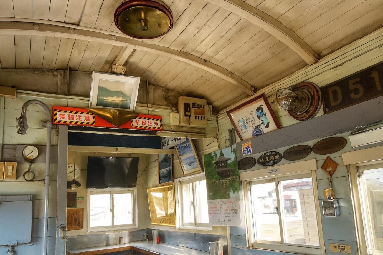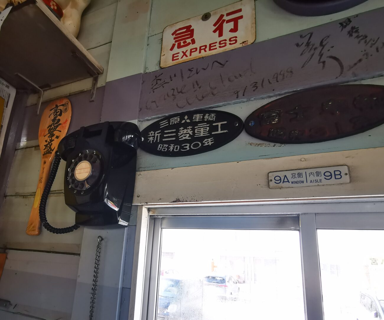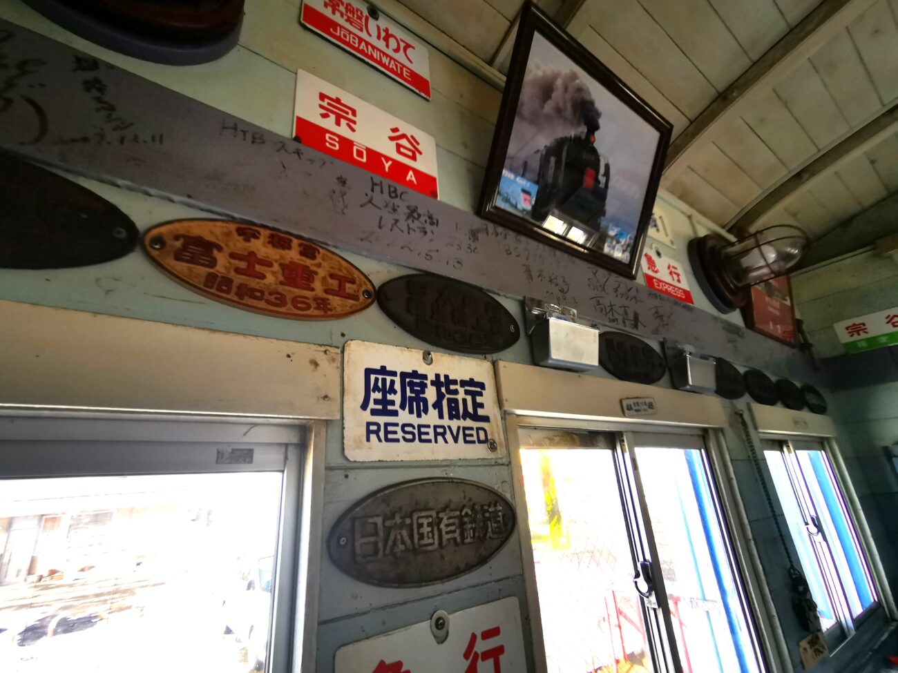 店内は「ブルートレイン」の名にふさわしく、いたるところに鉄道グッズがあふれています。