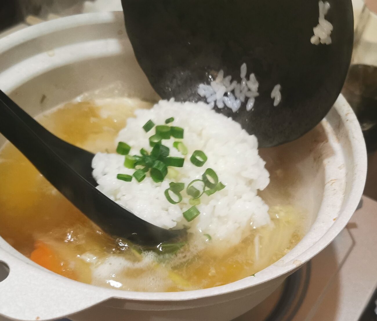 鍋を食べた後は、旨味たっぷりの出汁に米を投入して「おじや」に。