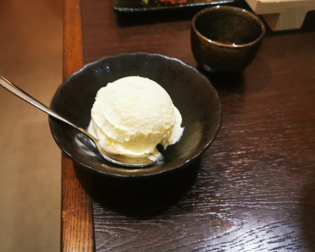 デザートのアイスで口直しをして、しっかり飲んで食べて完食です。