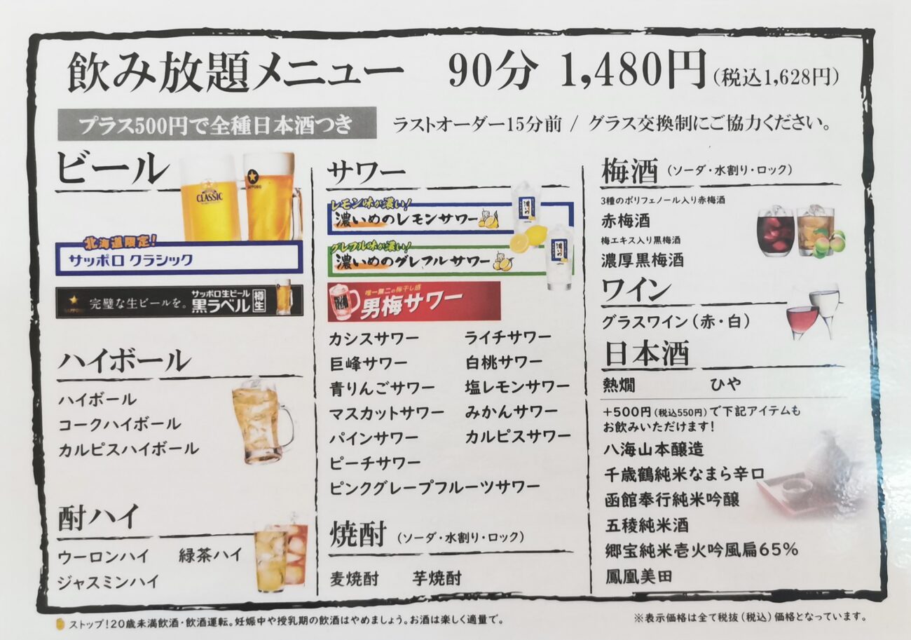 公式サイトをチェックすると、コースは飲み放題付きで5980円と3980円の2種類。