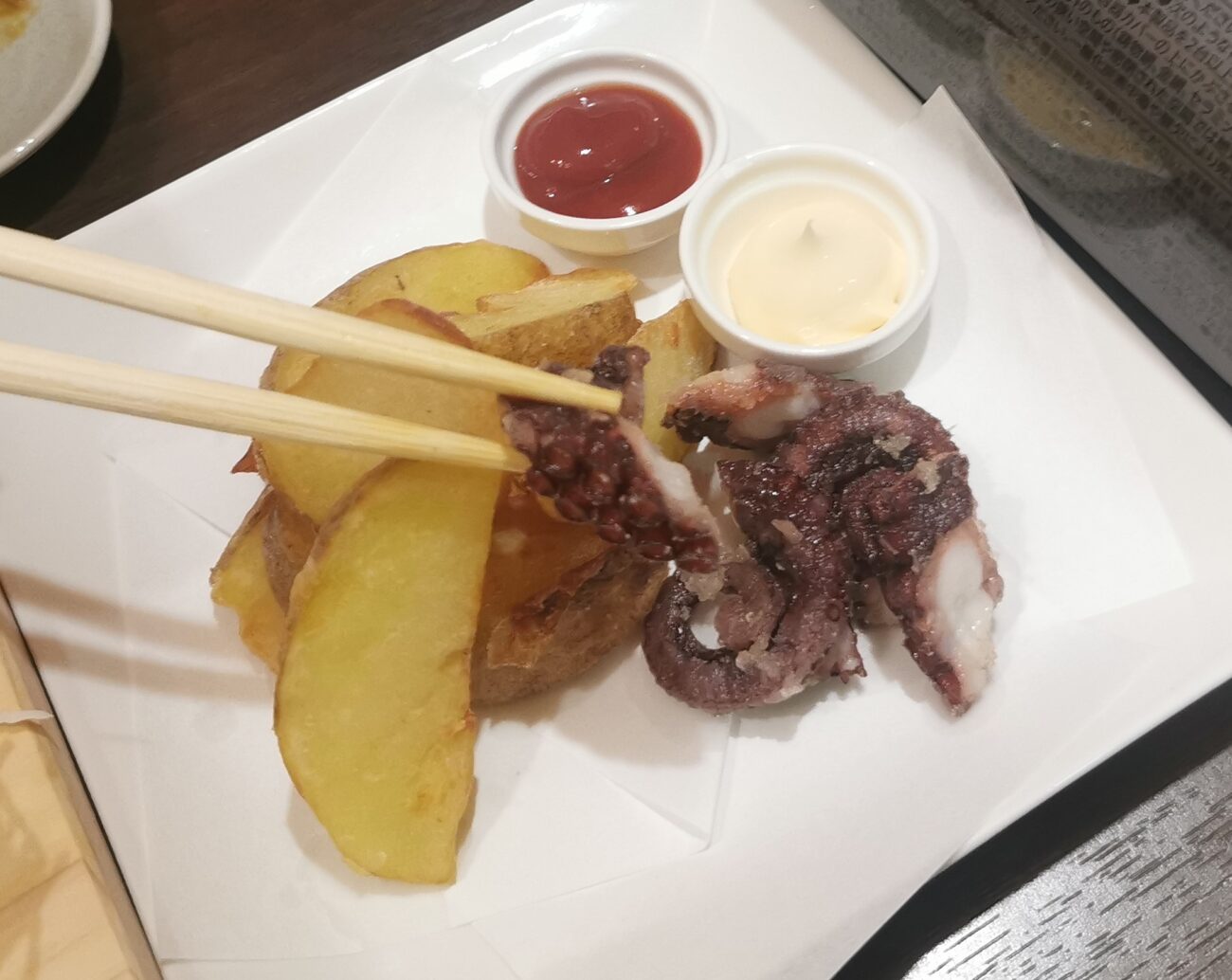 「函館産タコザンギ」と「とうやポテトフライ」は、一皿に仲良く盛られてやってきました。