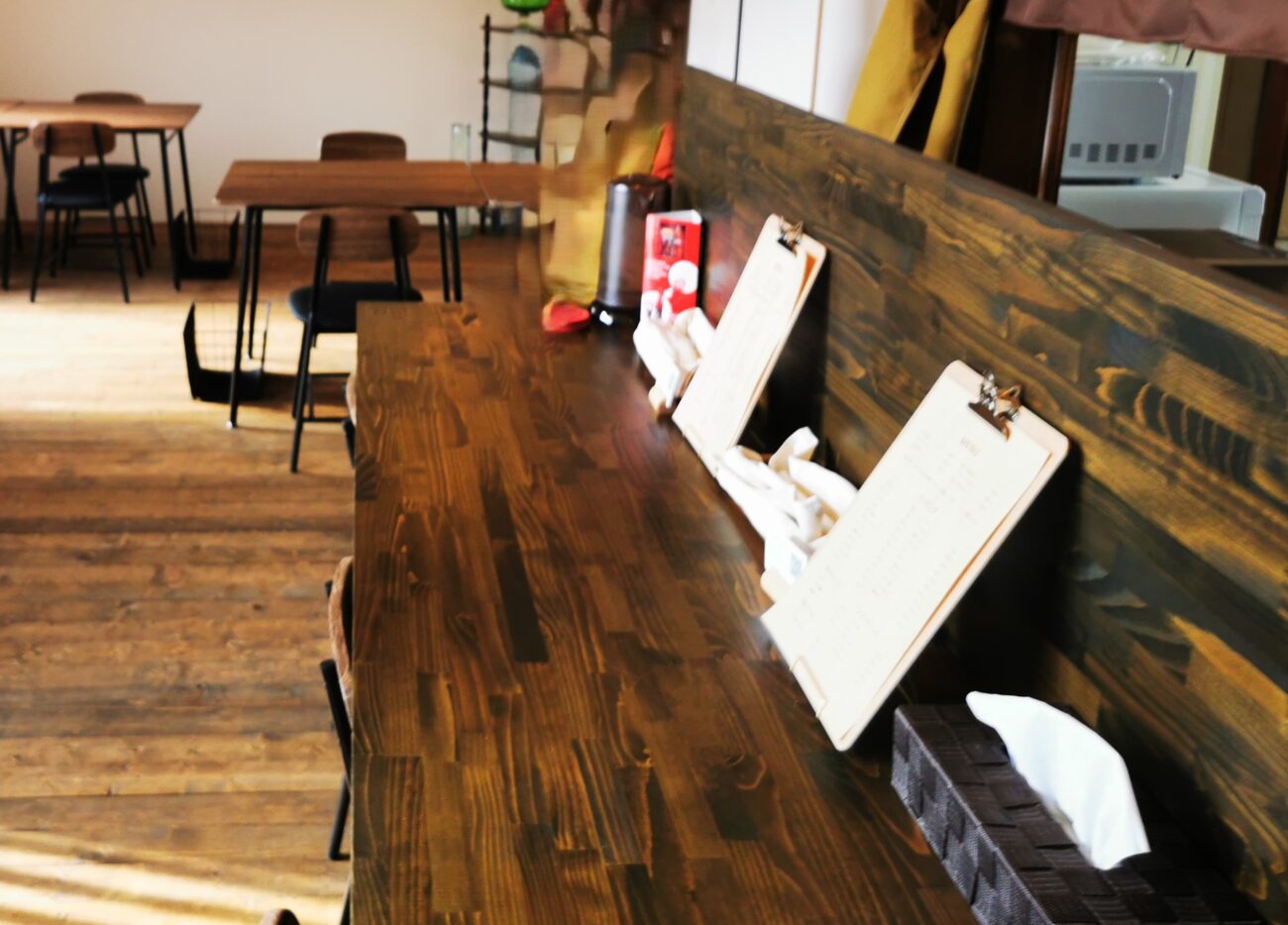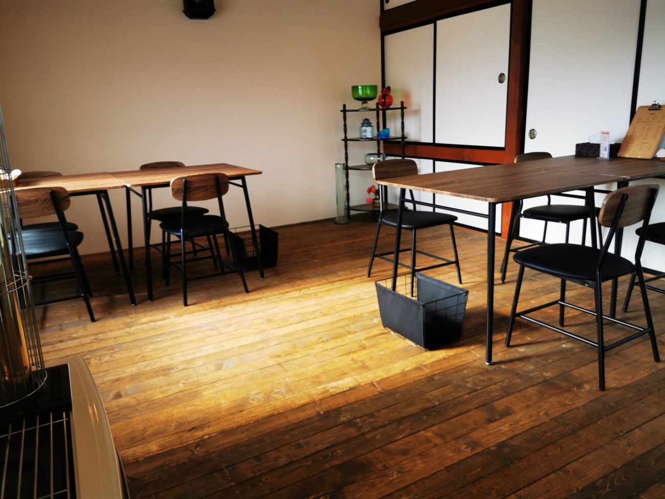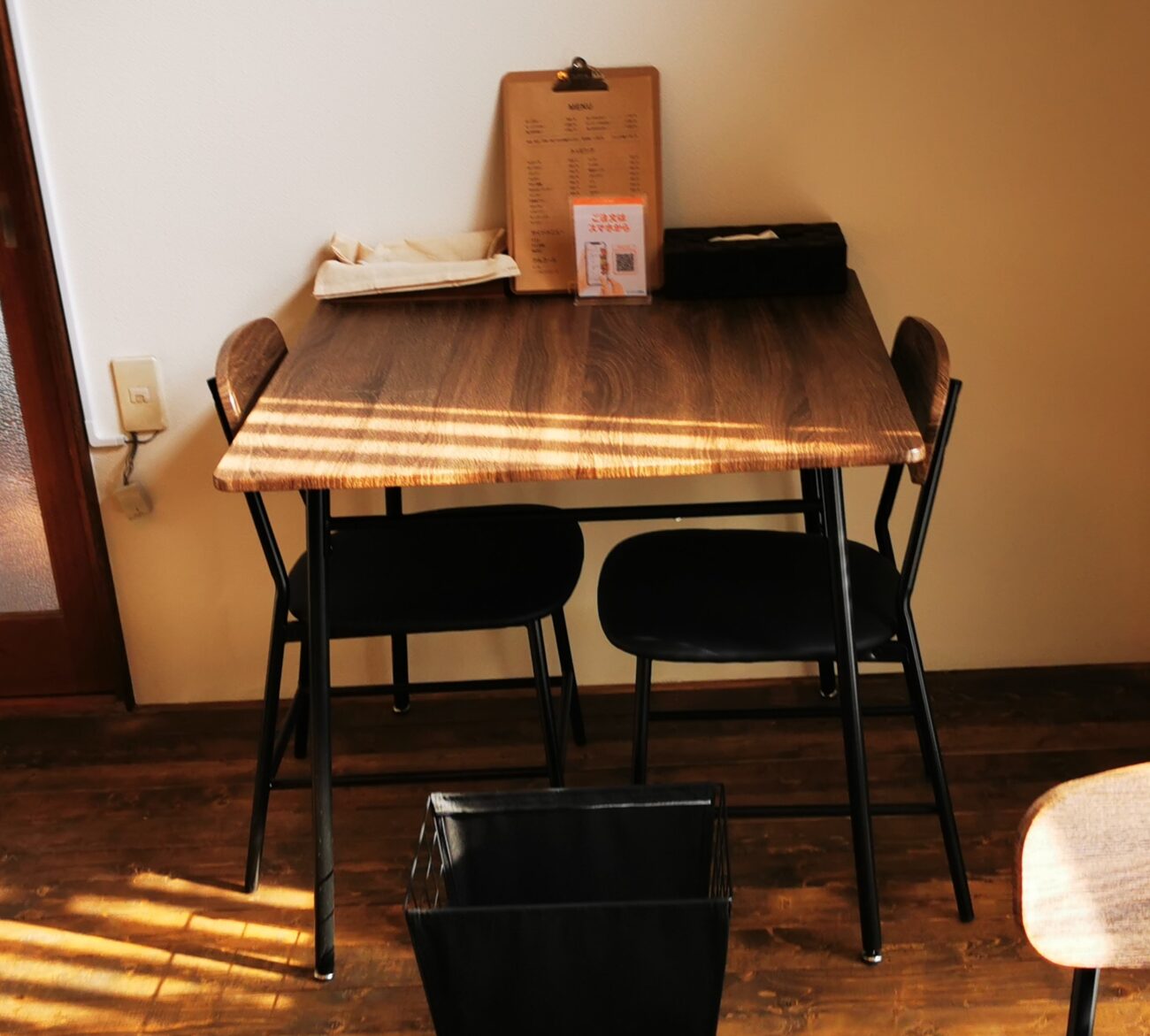 2人用テーブルが2卓、4人用テーブルが2卓、カウンター席が3席です。