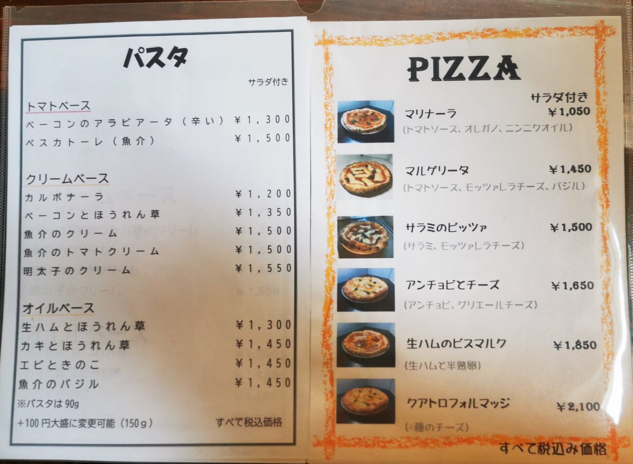 ピザは以前に食べたのと重ならないように、「サラミのピッツァ」にしました。1500円