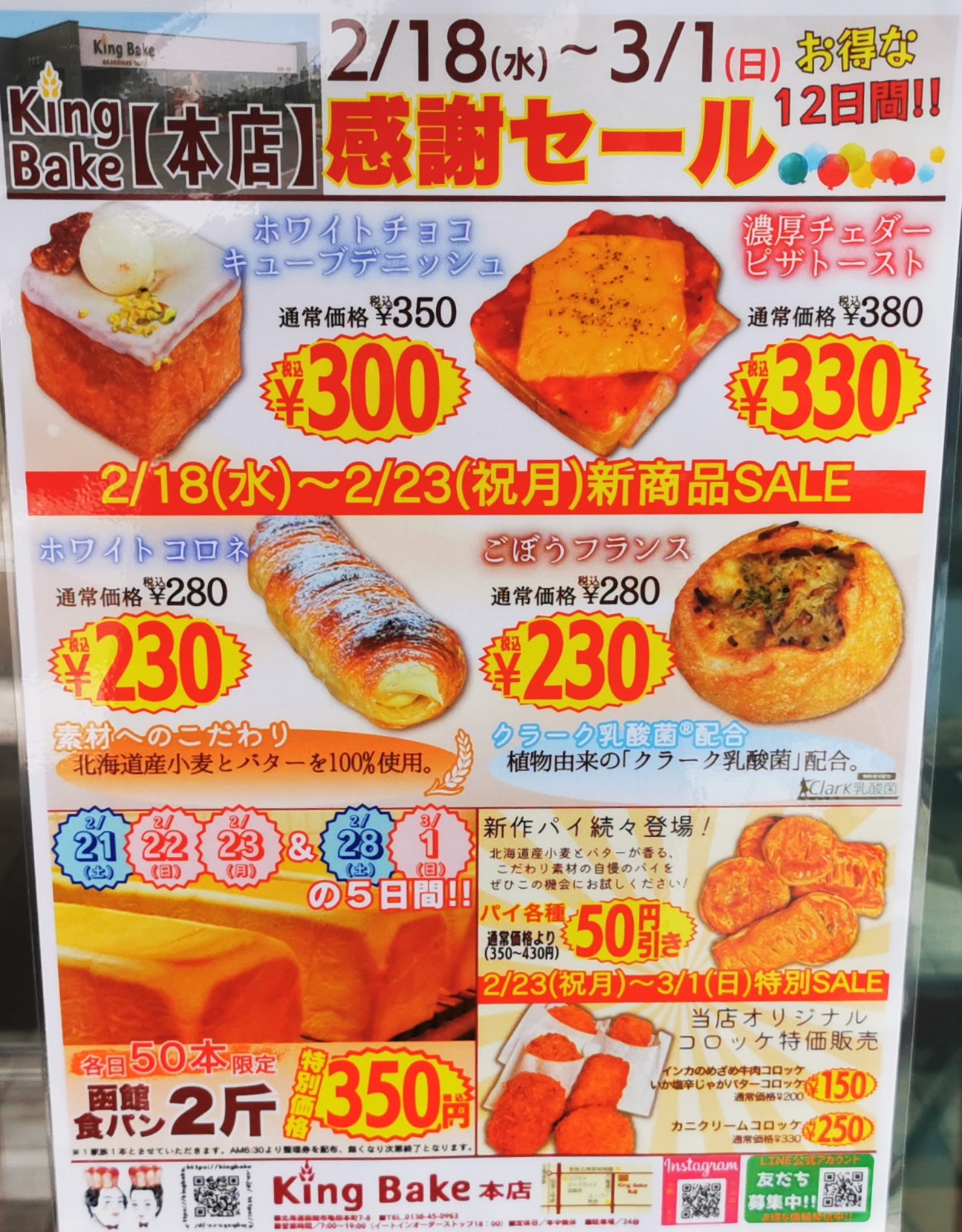 売り出しの50円引きのパンは、2月新商品と書かれていました。