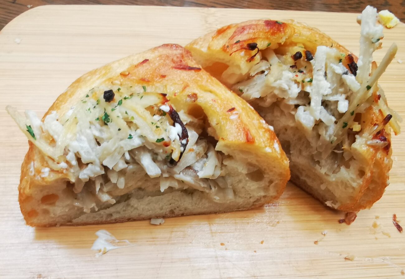 フランスパン生地の上に、ごぼうサラダがのっています。