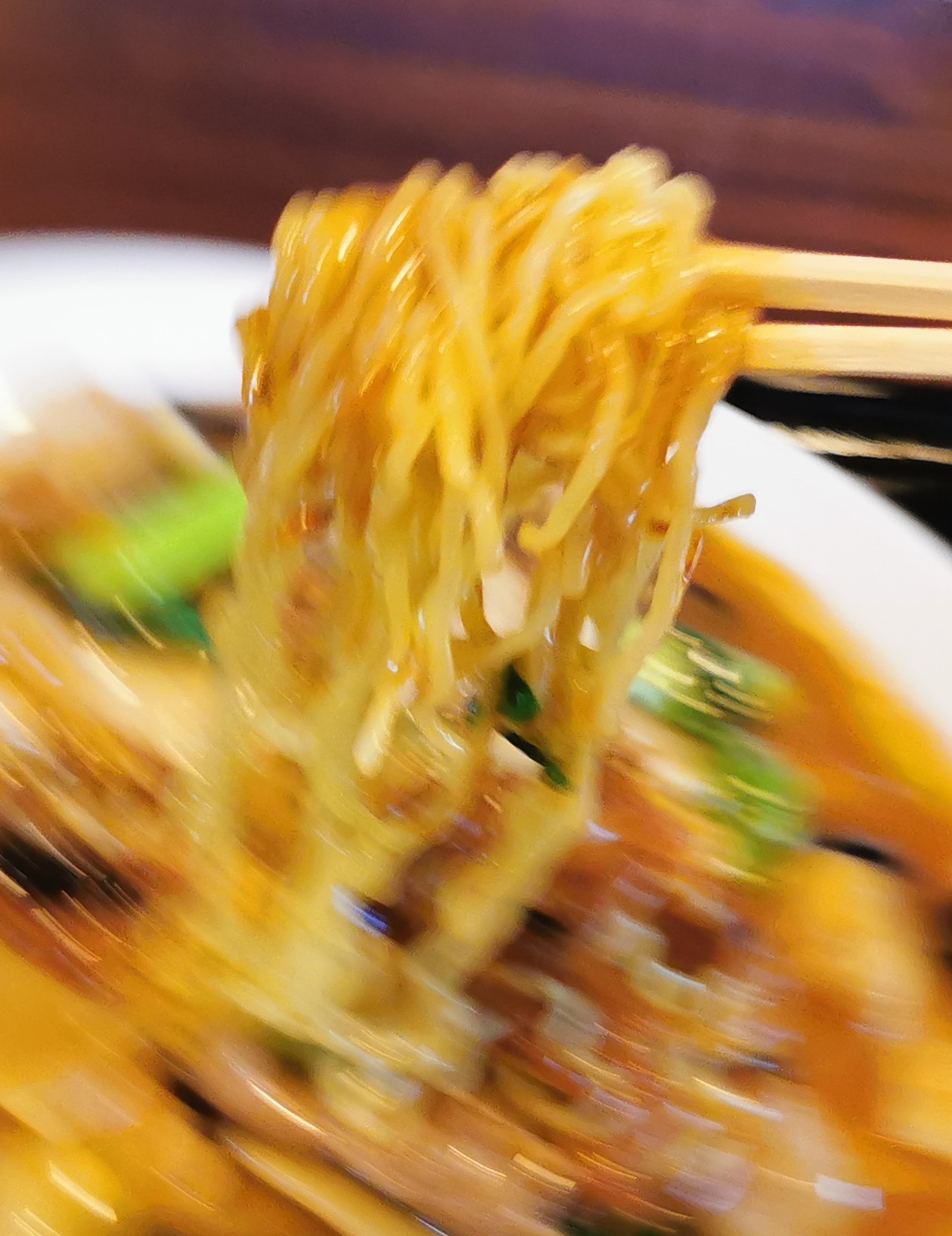 一口すすると、とろみのある餡は醤油ベースの旨味に野菜と牛肉の味が溶け込み、熱さと旨みが一気に口の中に広がります。