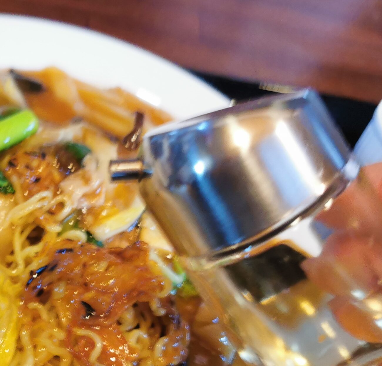 あんかけ焼きそばには「酢」も欠かせません。味変を楽しみます。