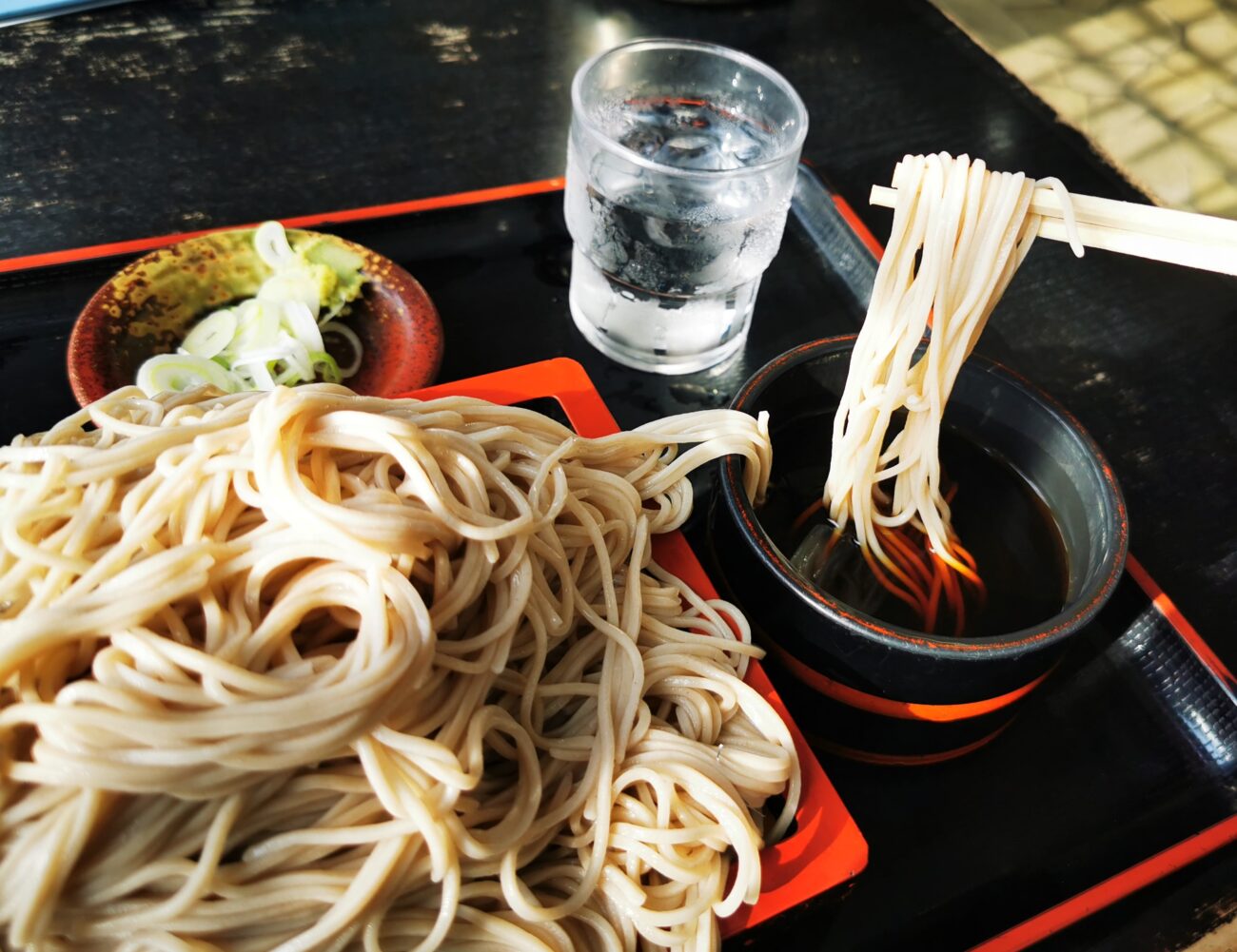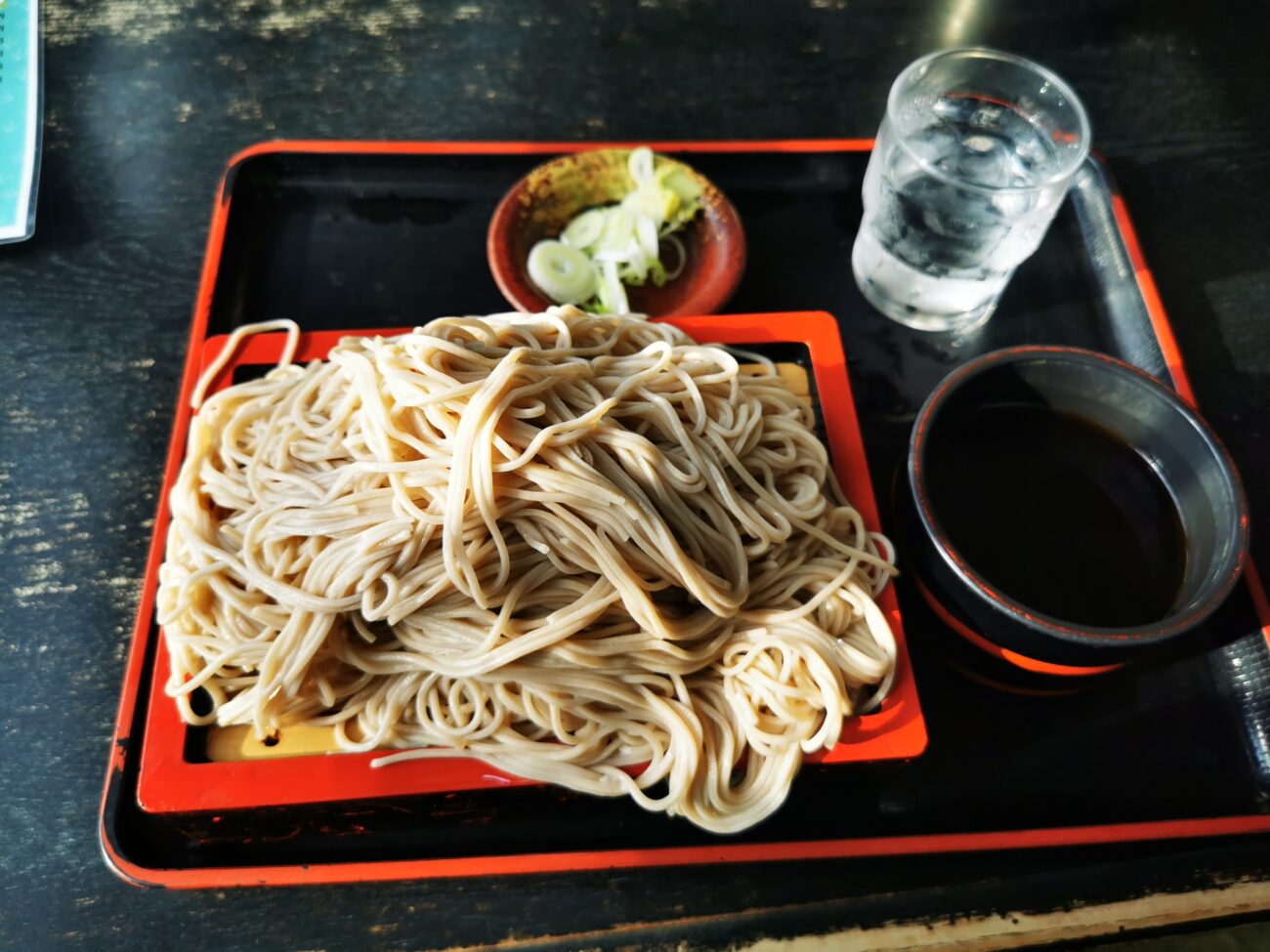 つゆはキリッとした濃いめで、そばの量の多さでもしっかり絡んでくれるタイプ。