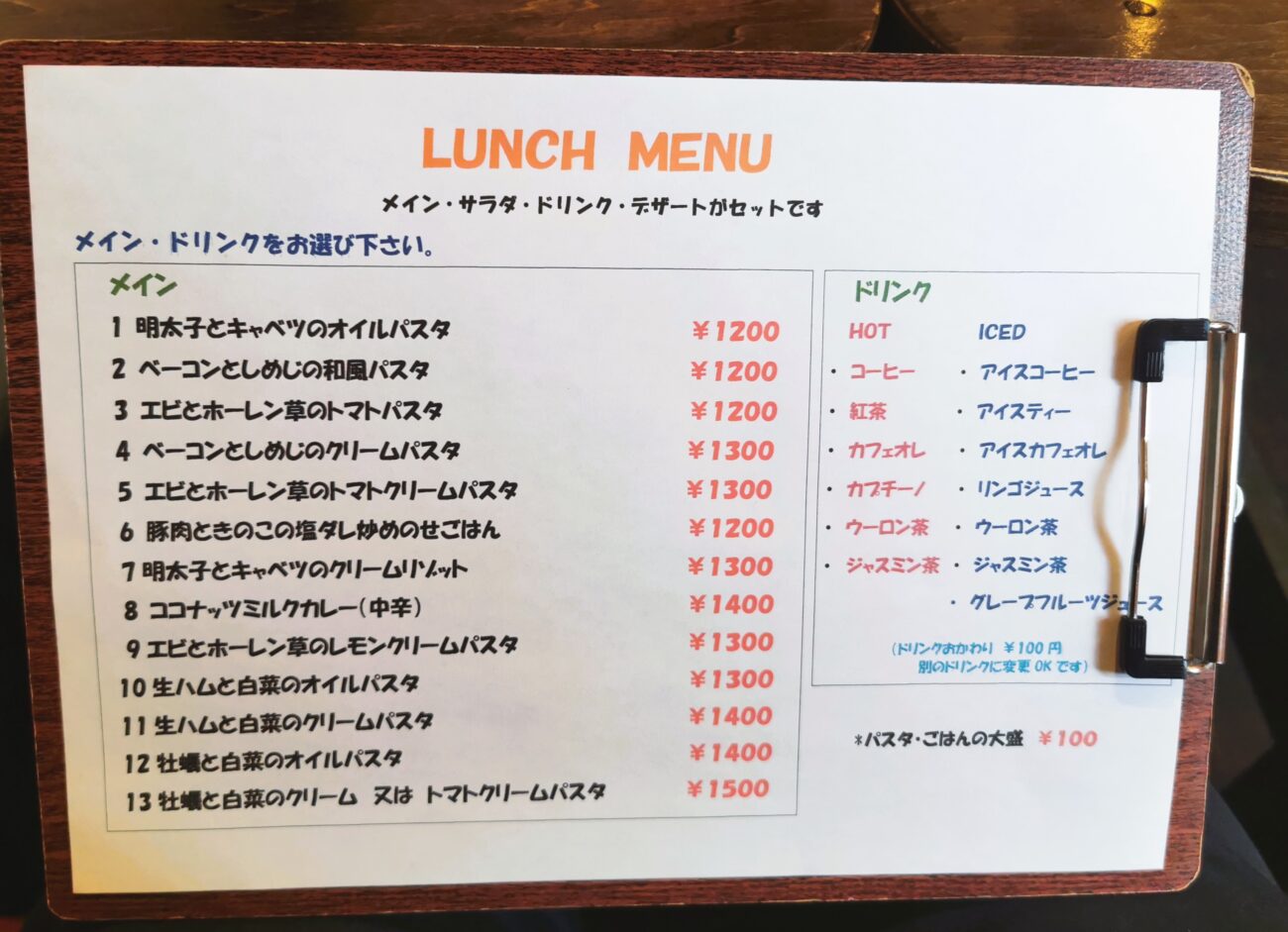 さっそくメニューを見てみます。