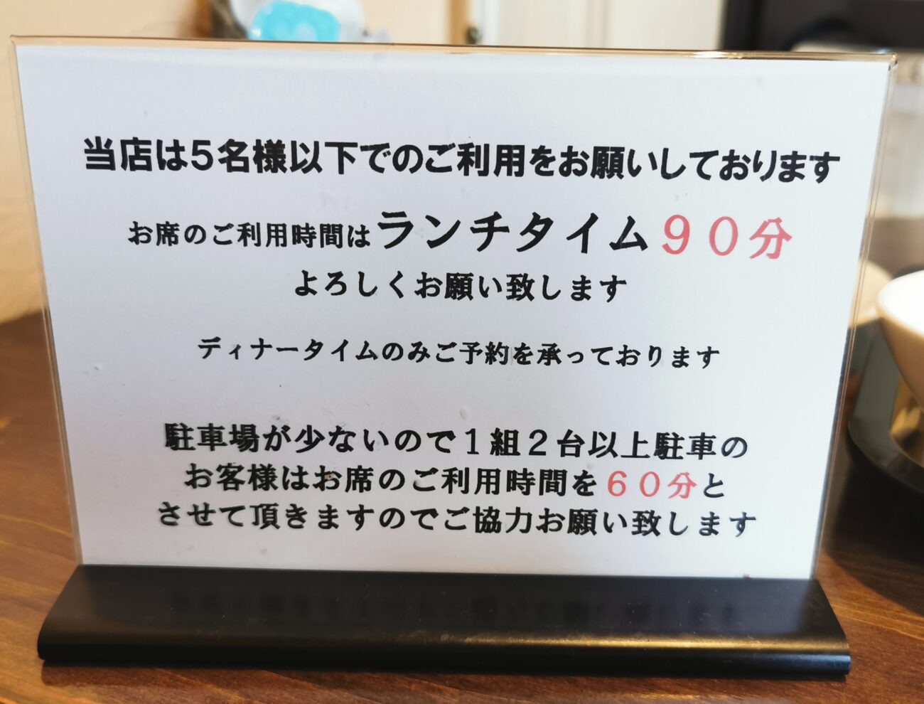店内に入ると、営業時間の案内が掲示されていました。