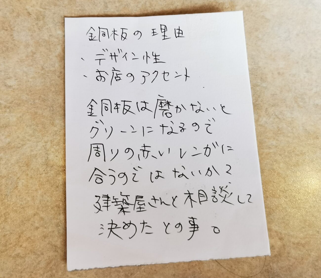 ちょうどその話をしていたところ、顔なじみのスタッフさんが、以前話題に出ていた「銅」について調べたメモを手渡してくれました。