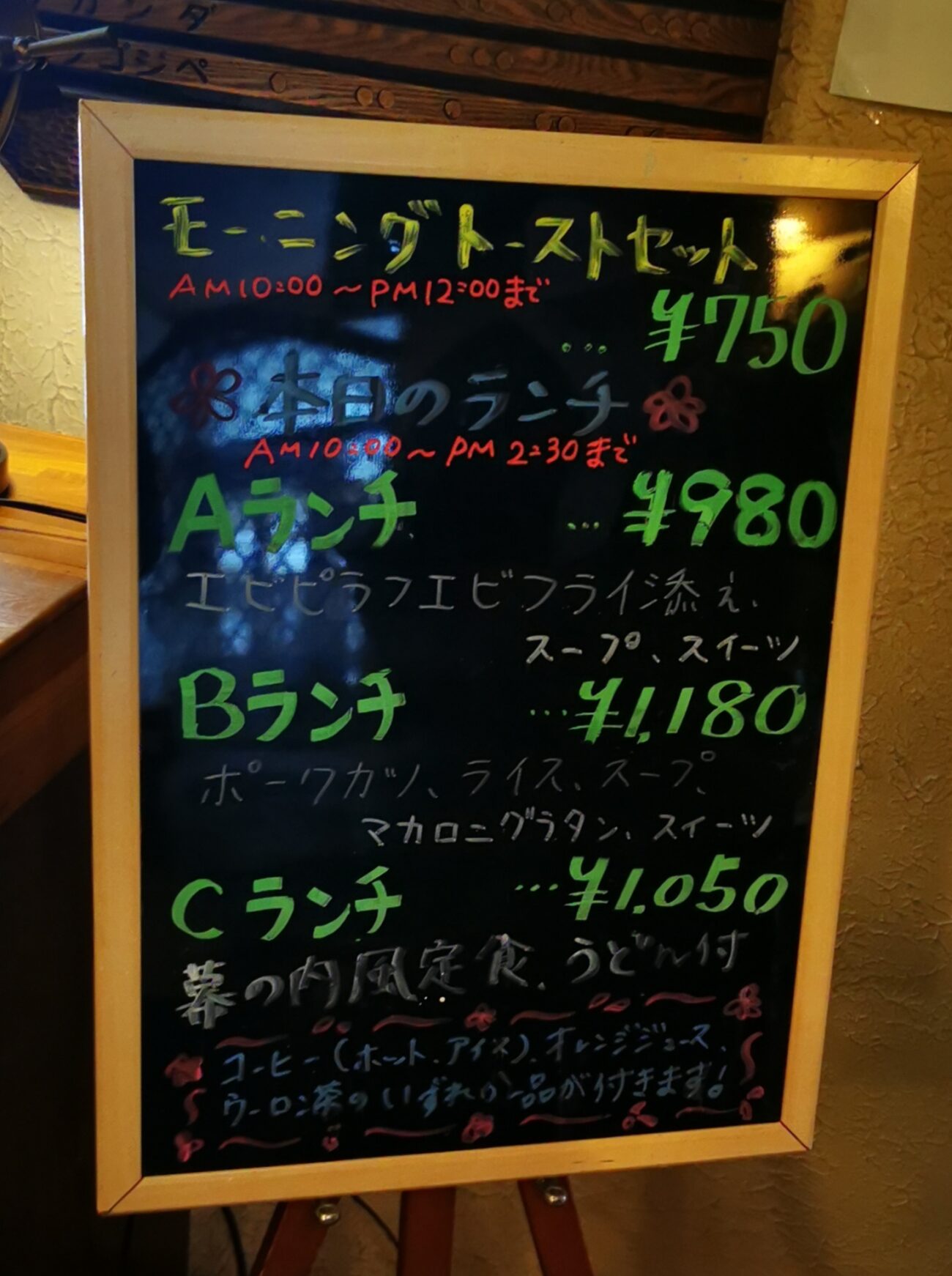 ●その日のランチメニューは黒板に