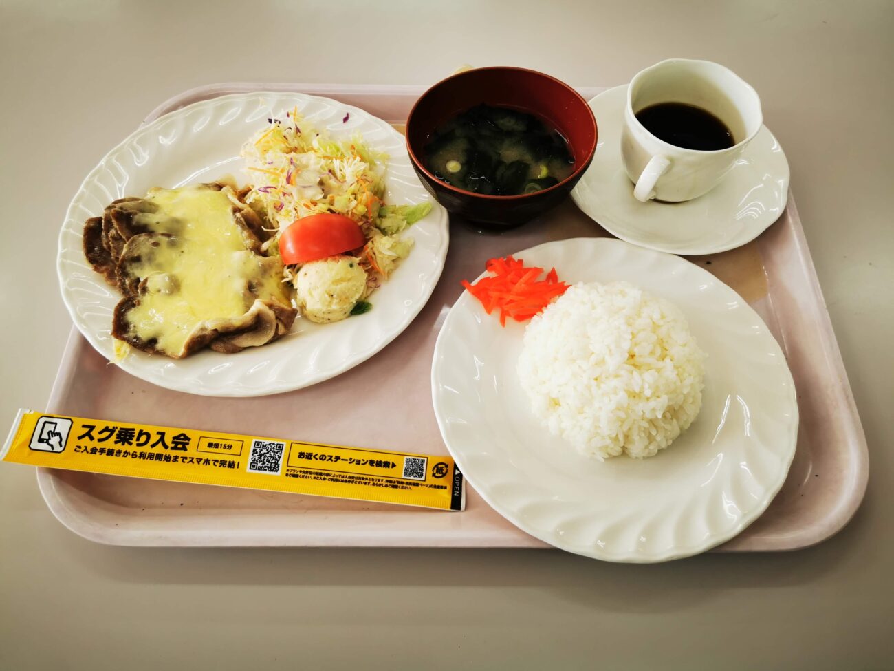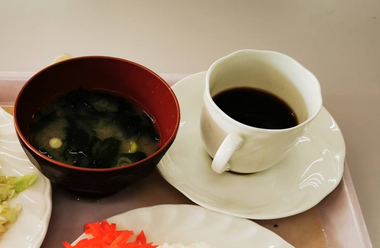 ライス、みそ汁、サラダ、ポテトサラダにコーヒーまで付いてこの価格。