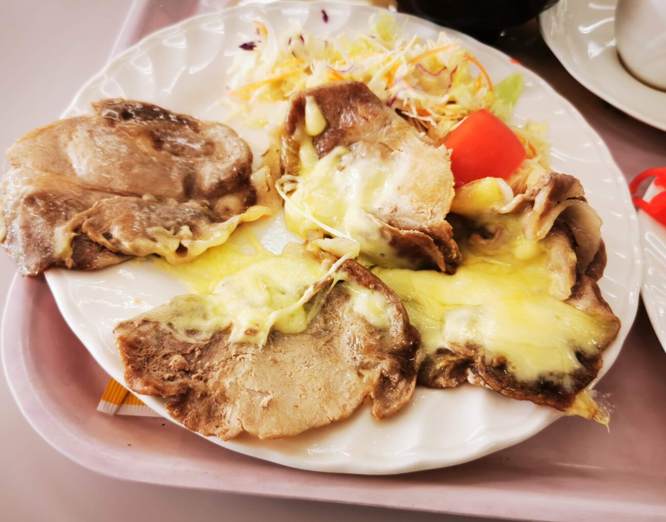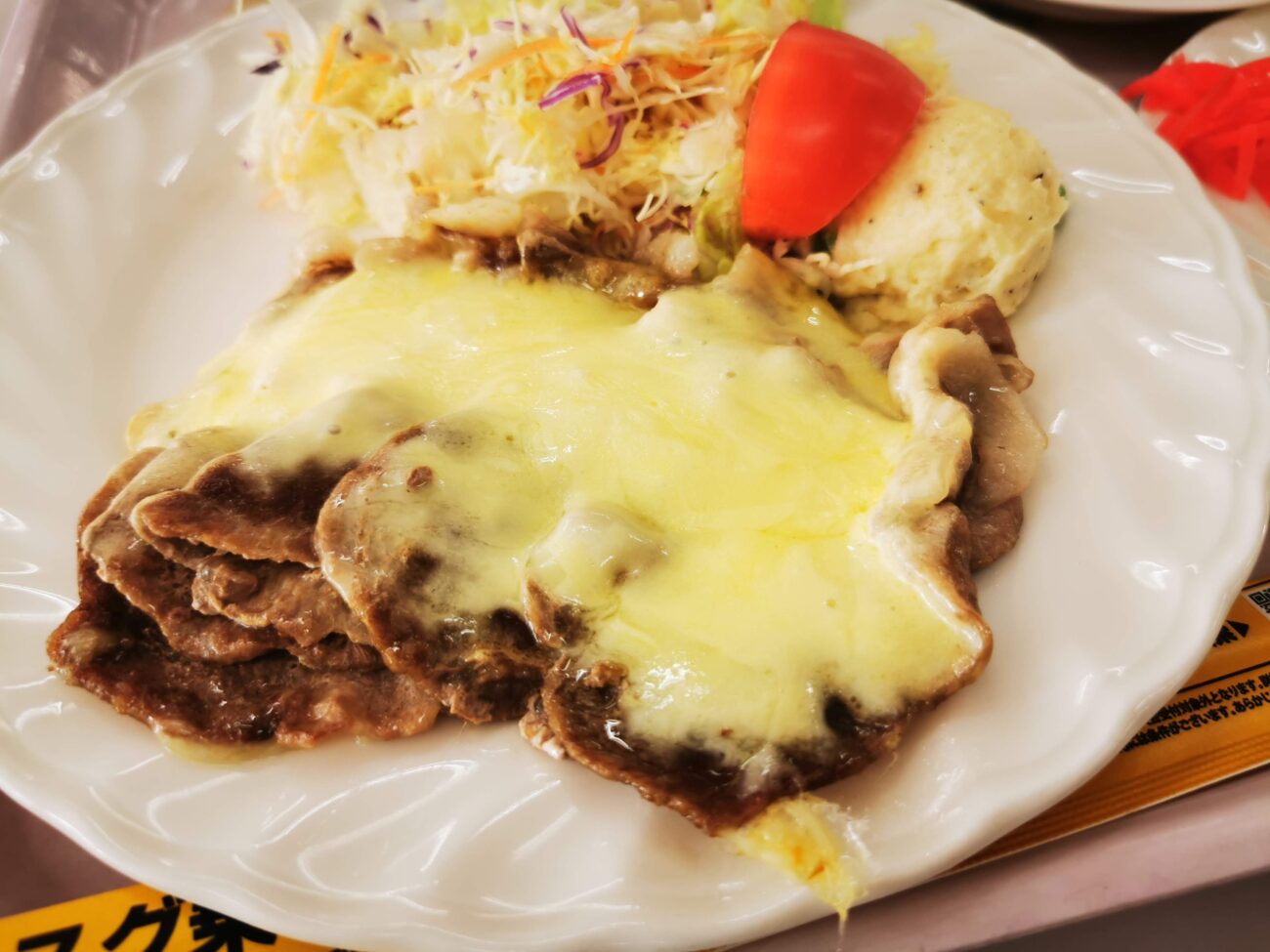 「豚肉の薄切りのチーズのせランチ」570円。