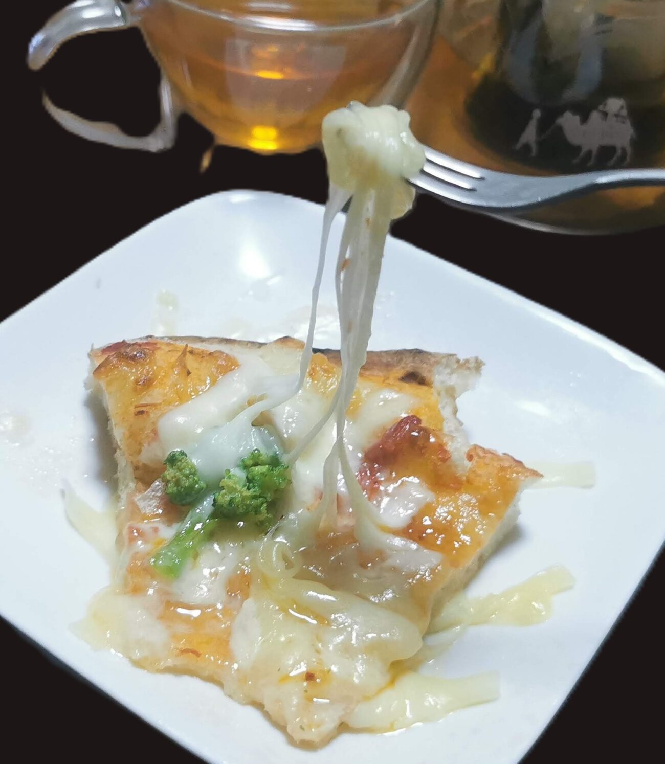 ここに冷蔵庫にストックしているピザ用チーズを足してみました。