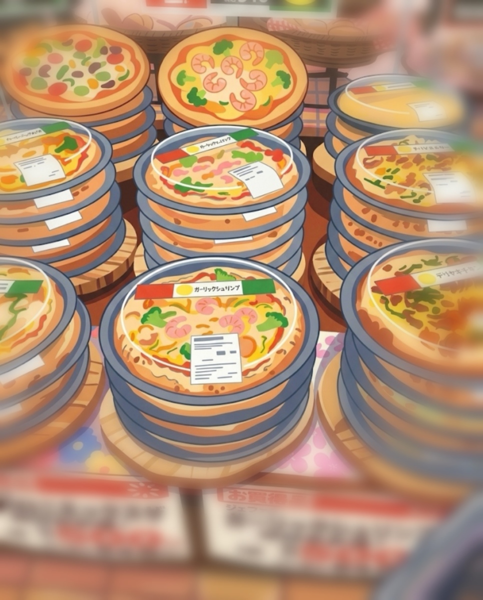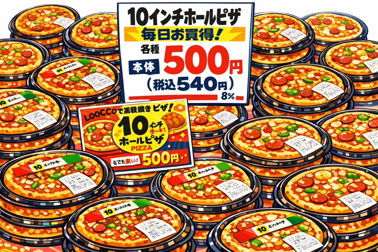 店内を見ていると、なんとワンコインのピザが。これは見逃せないということで、予定変更して購入です。