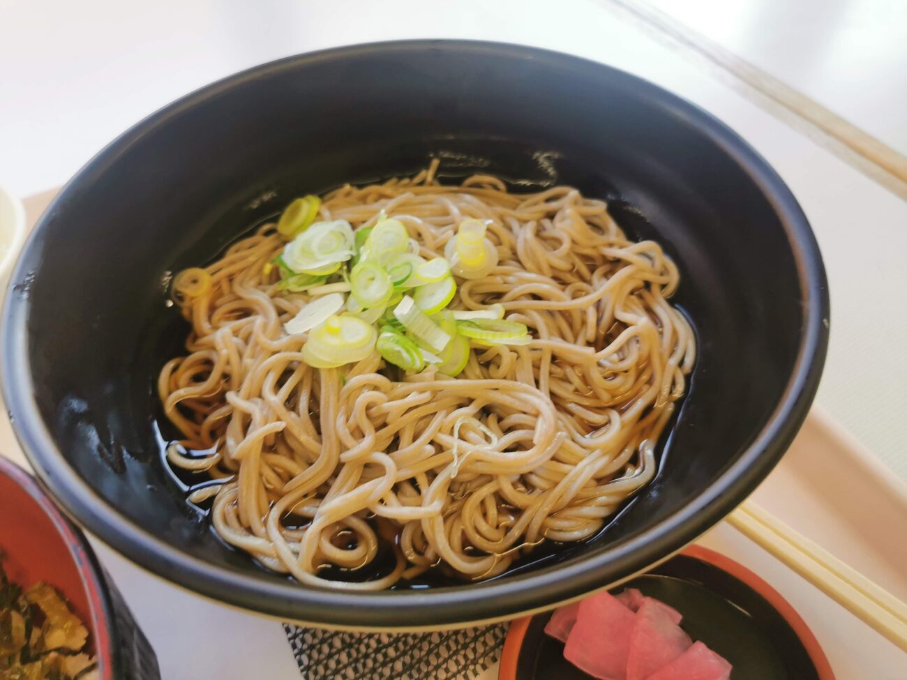 冷たいそばは、つるっとしたのど越しで、ほんのり甘めのつゆがやさしい味わい。