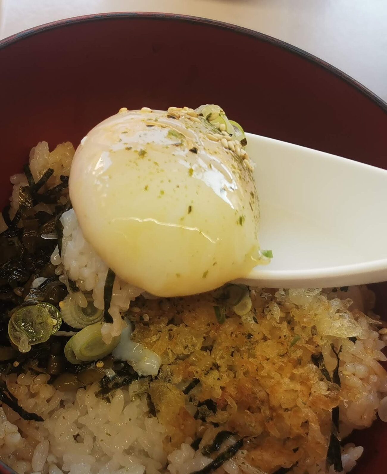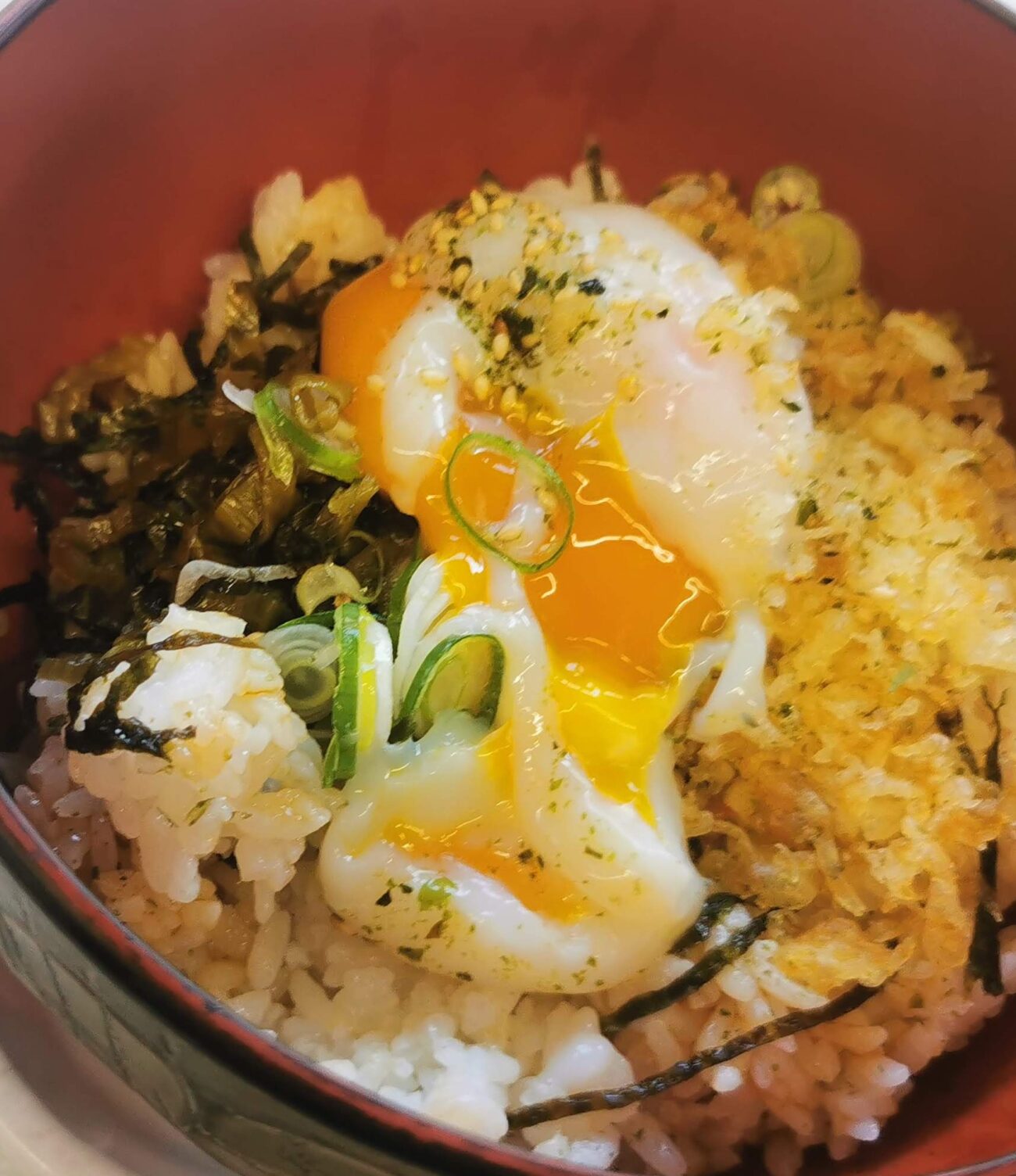 そこに温玉を崩すと、黄身がとろ〜りと広がって全体をやさしく包み込みます。