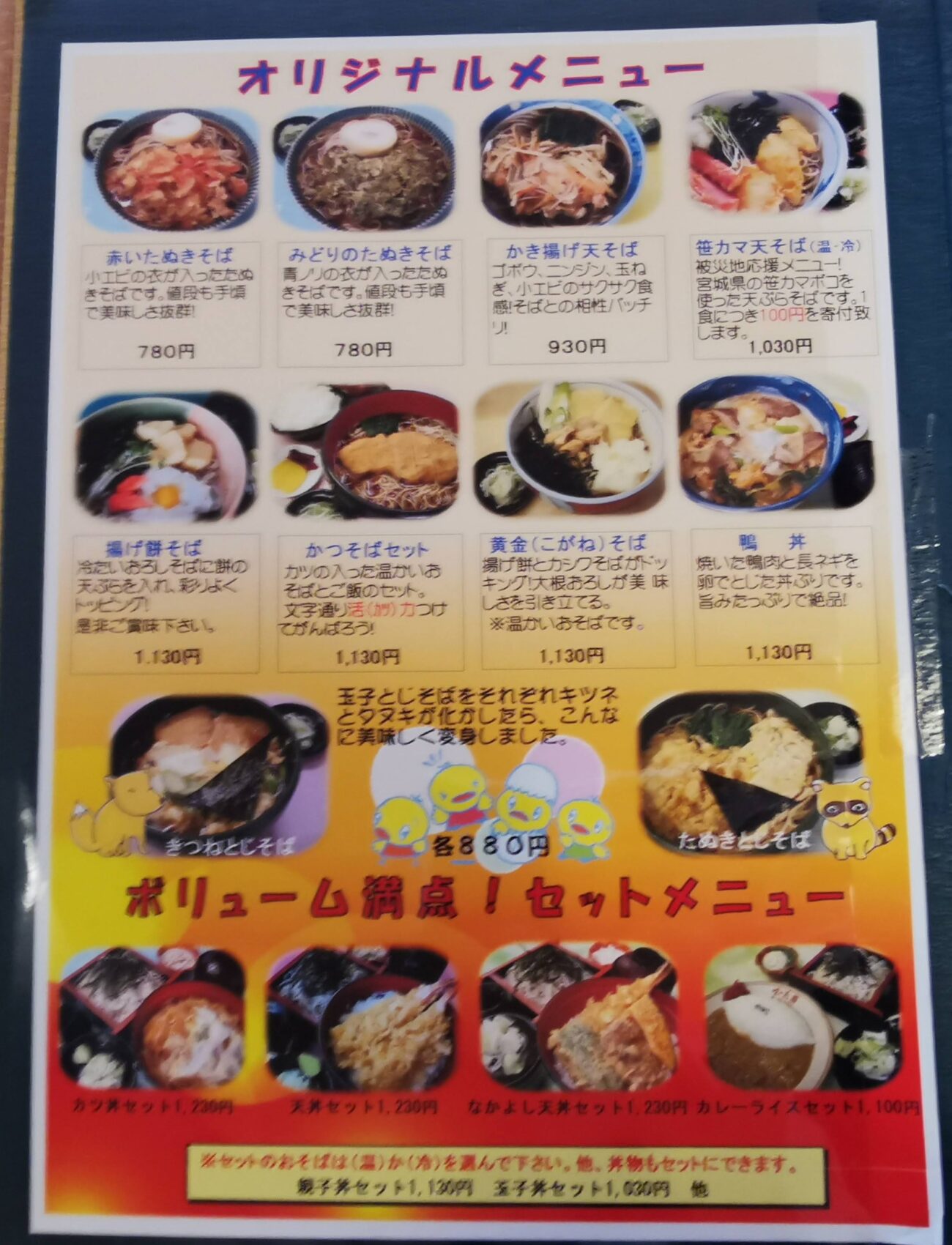 メニューは、定食系から蕎麦までしっかり揃っている品揃えです。