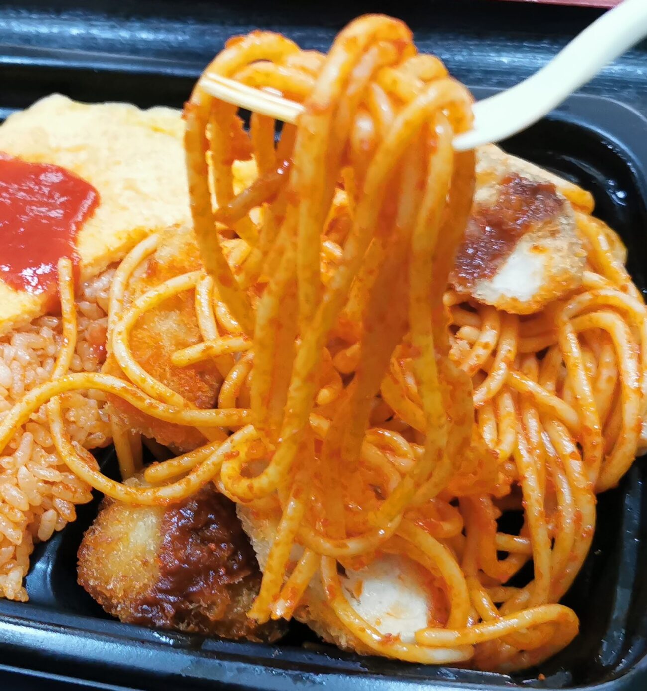 フタを開けると、しっかりケチャップが絡んだナポリタン。