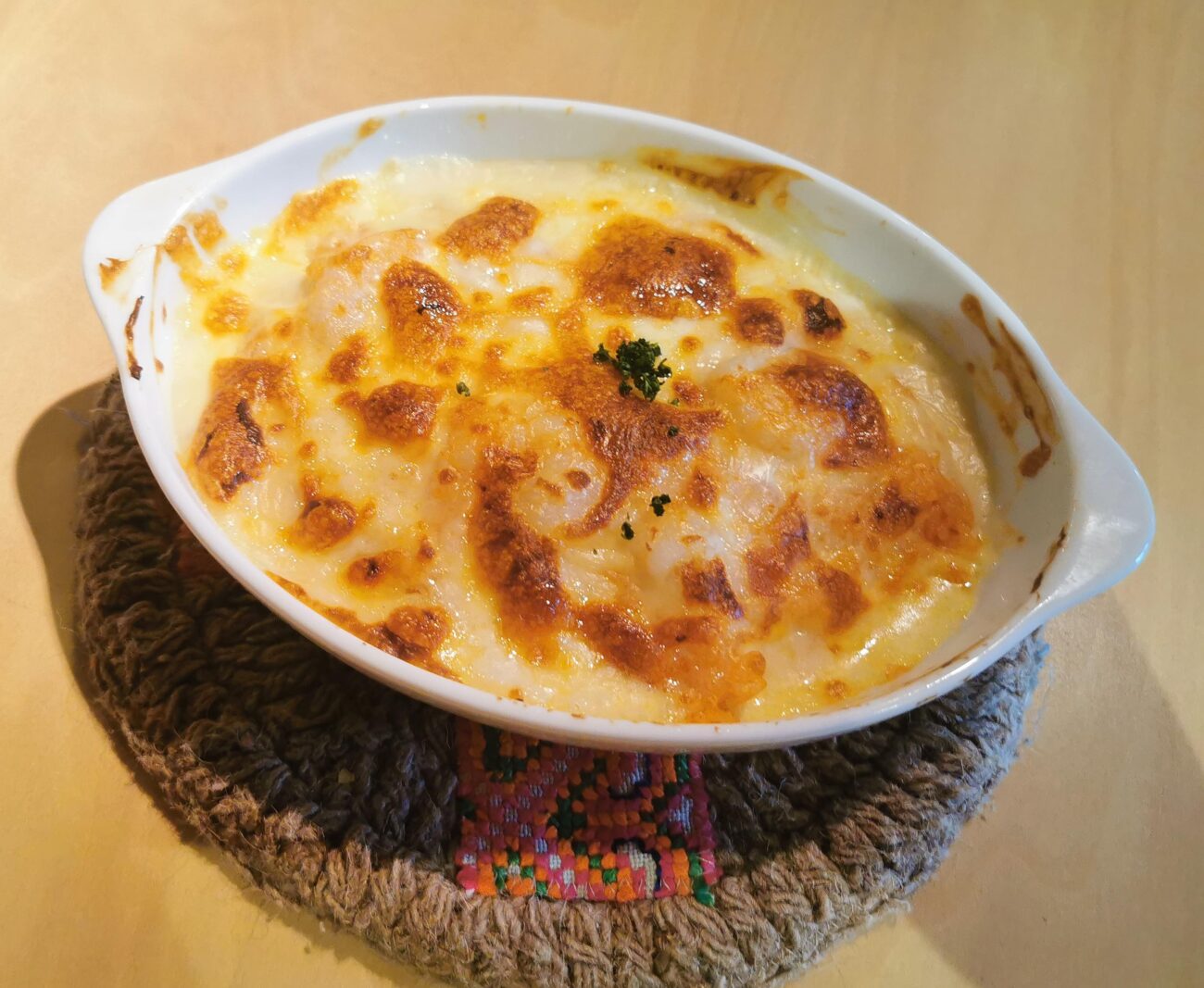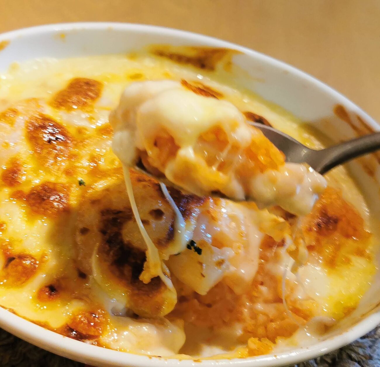 ホワイトソースはまろやかで、焼き目のついたチーズの香ばしさとよく合います。