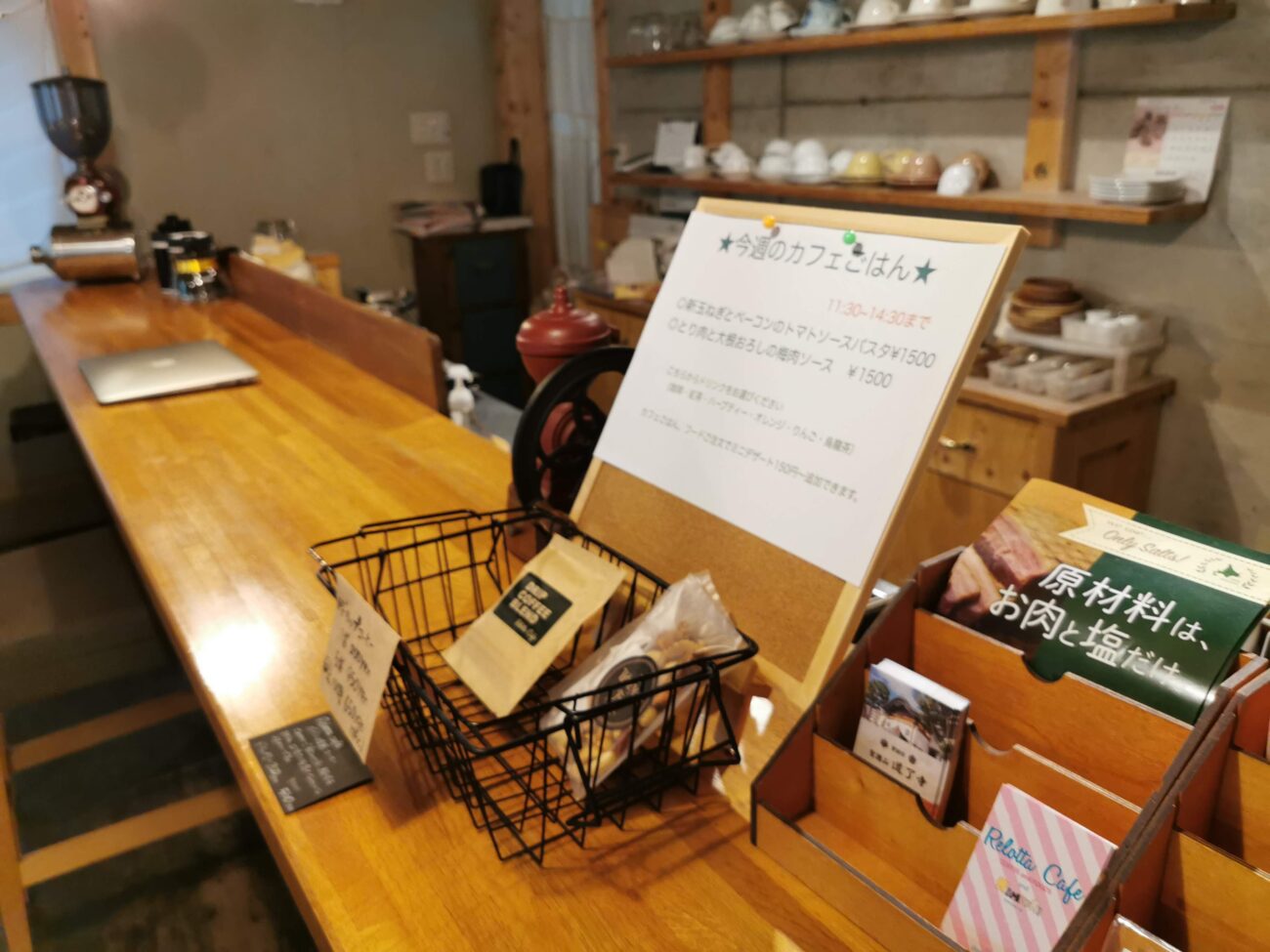 カウンターにはコーヒー器具やカップが並び、見ているだけでも楽しくなります。