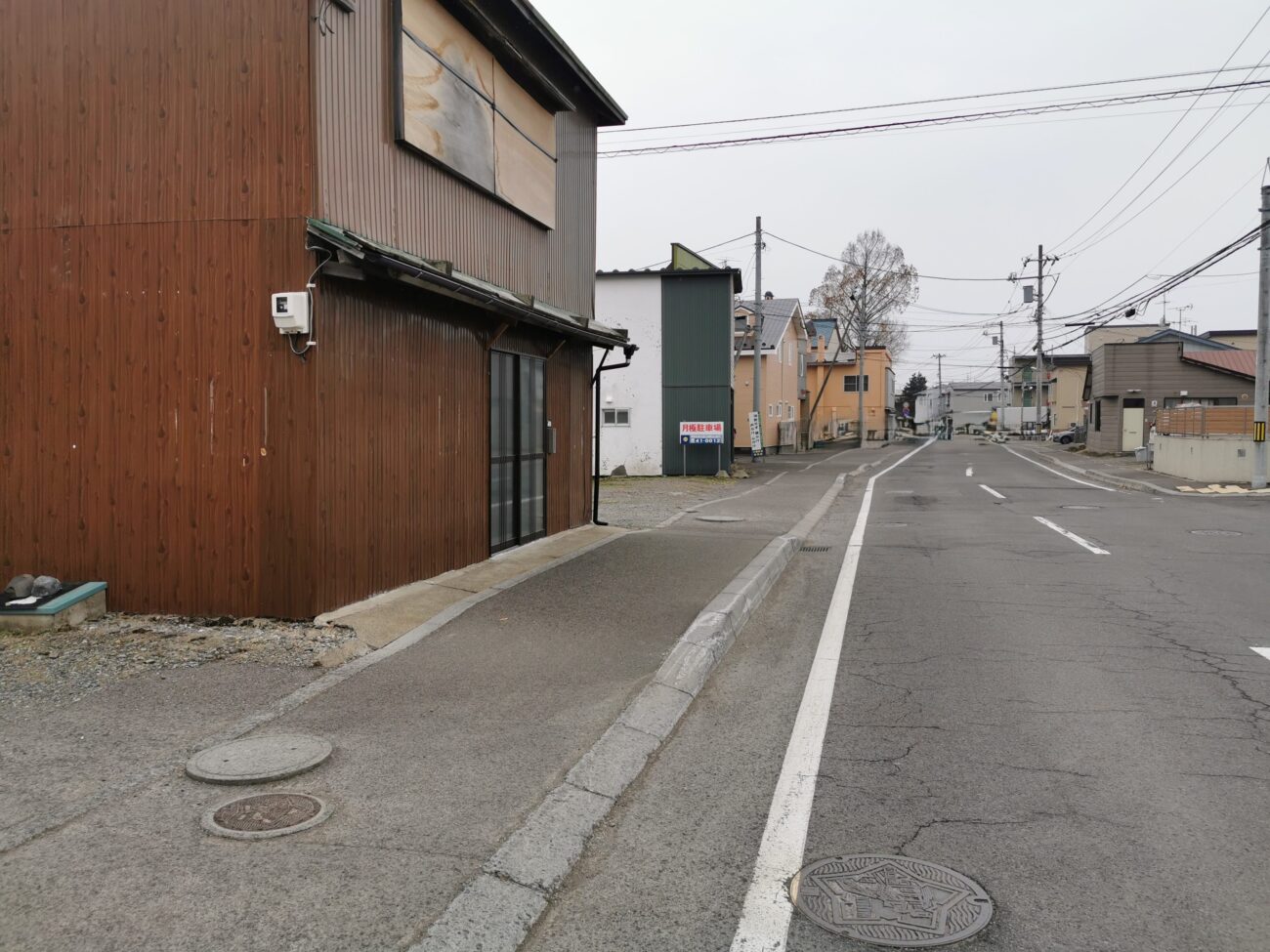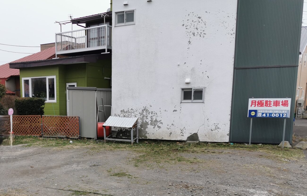 少し北大方向に行ったとことに月極駐車場の看板があり、そこを左です。