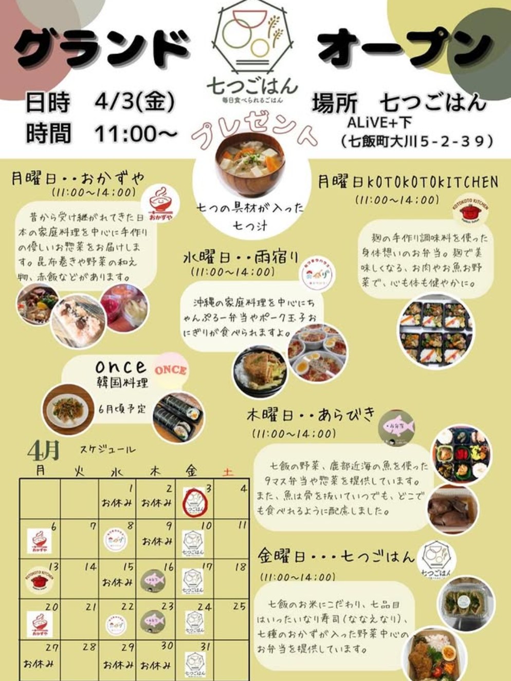 4月3日(金曜)、七飯町の「アライブ」に【七つごはん】がオープンしました。