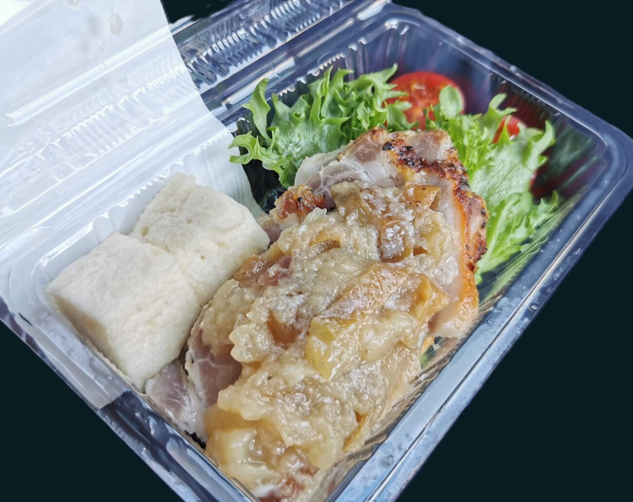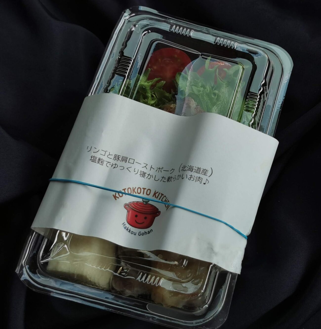 こちらは、KOTOKOTO KICHENさんの「リンゴと豚肩ローストポーク」。400円