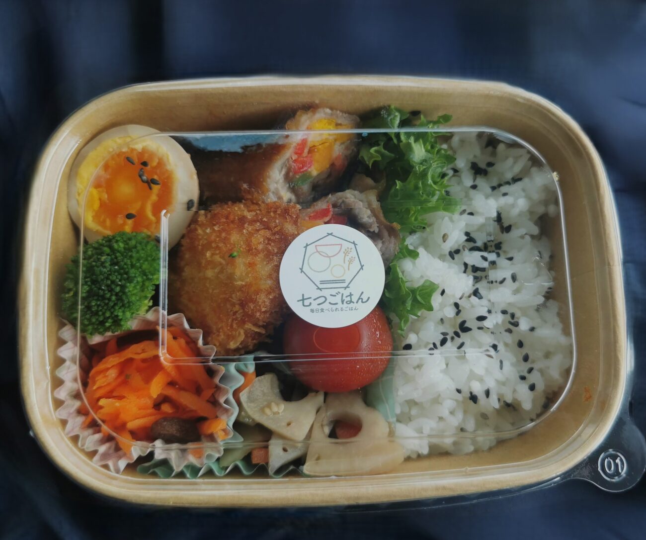 七飯にこだわった内容で「7品目」を盛り込んだ弁当。このこだわりも良いですね。