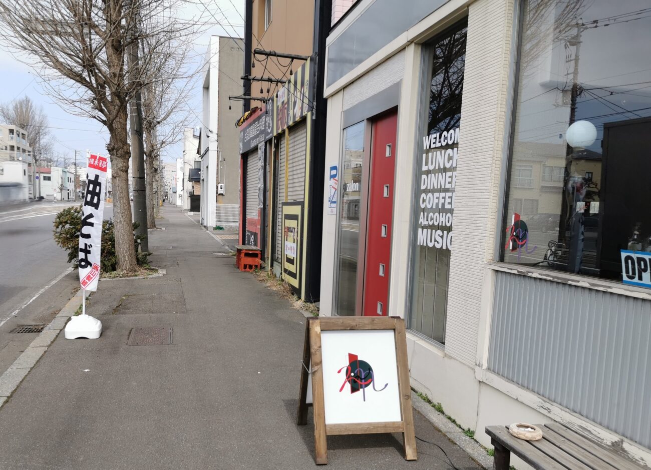 お店の前には市電が走っています。