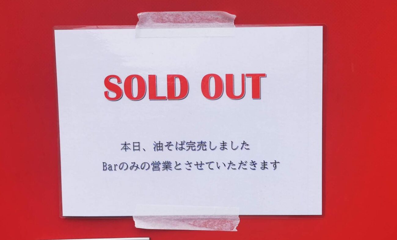 店の外には「油そば」ののぼりが立っています。