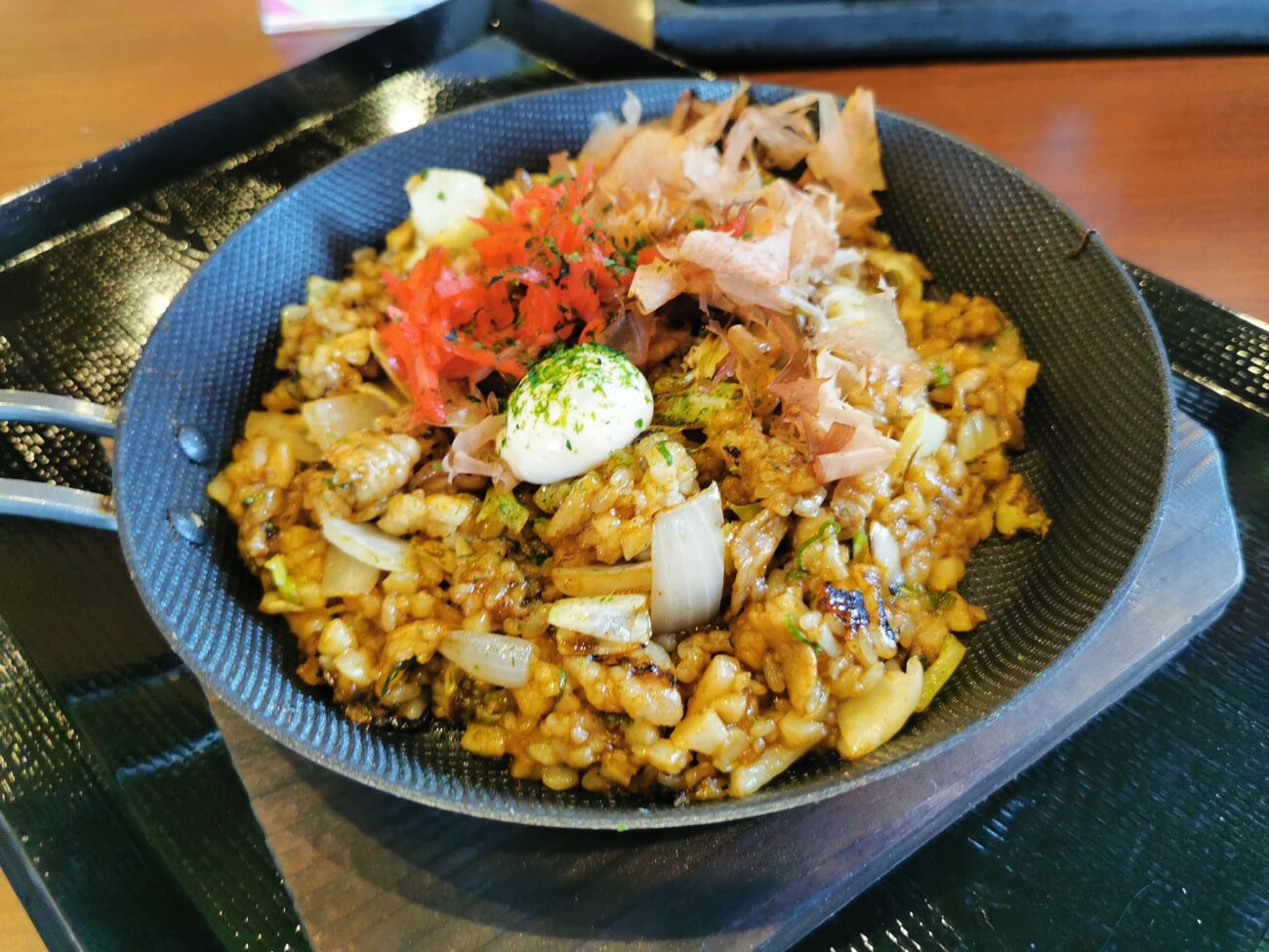 通常の炒め飯とは違い、食べ進めると最後の方でうどん特有のモチモチ感がしっかり感じられます。面白い食感です。