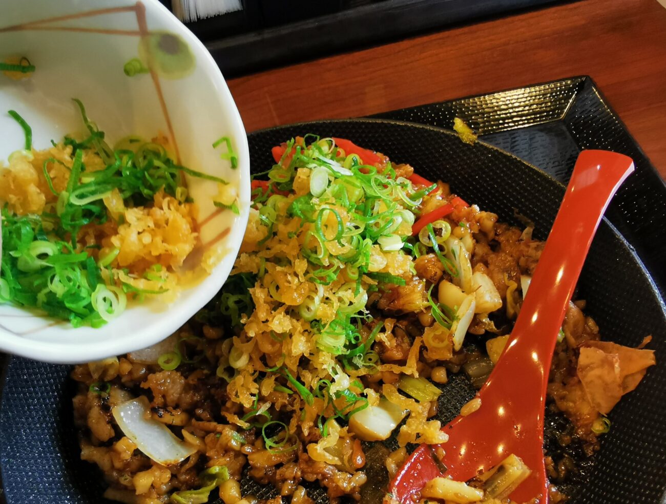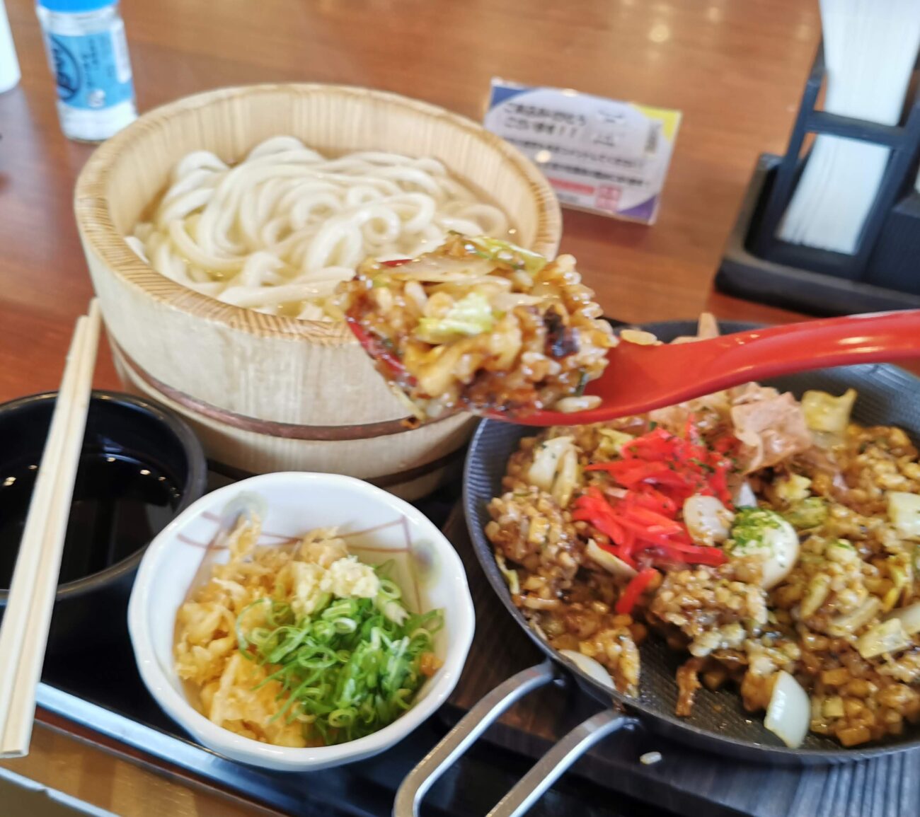 ここに無料の天かすと青ネギを加えると、さらに楽しめます。