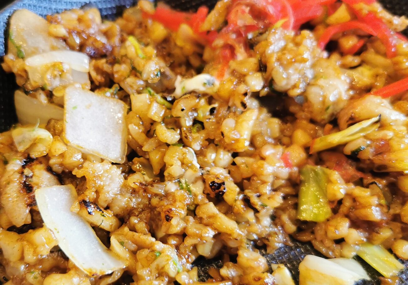 ●うどんとご飯をマゼて焼く!
