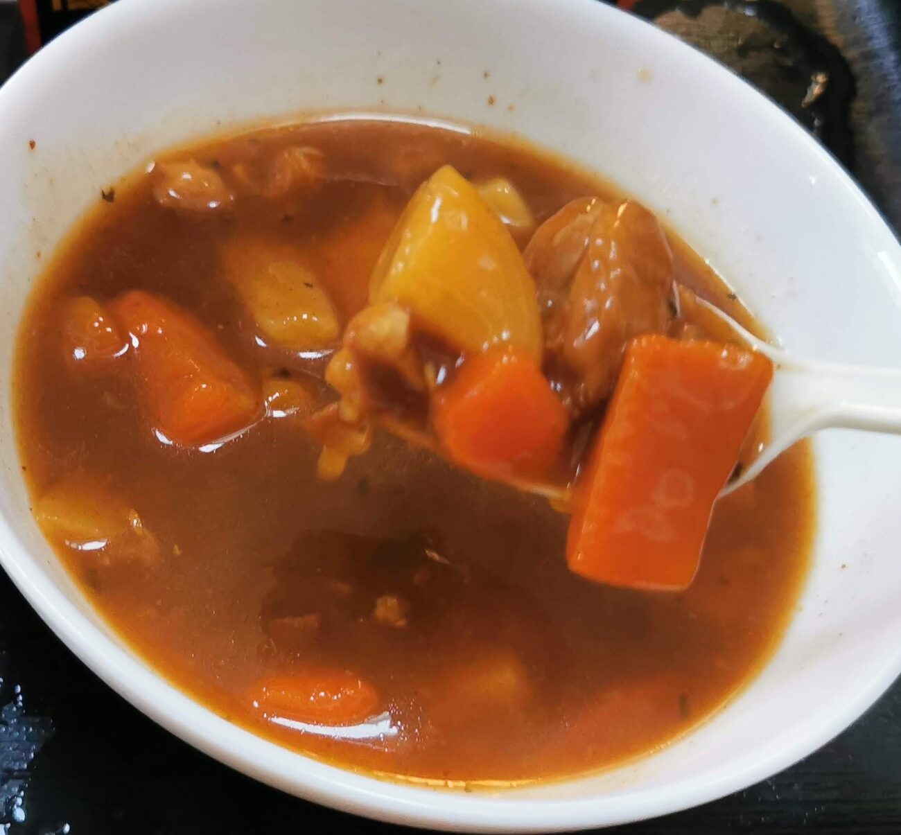 これは家庭で作るルーカレーをシャバシャバにした感じです。
