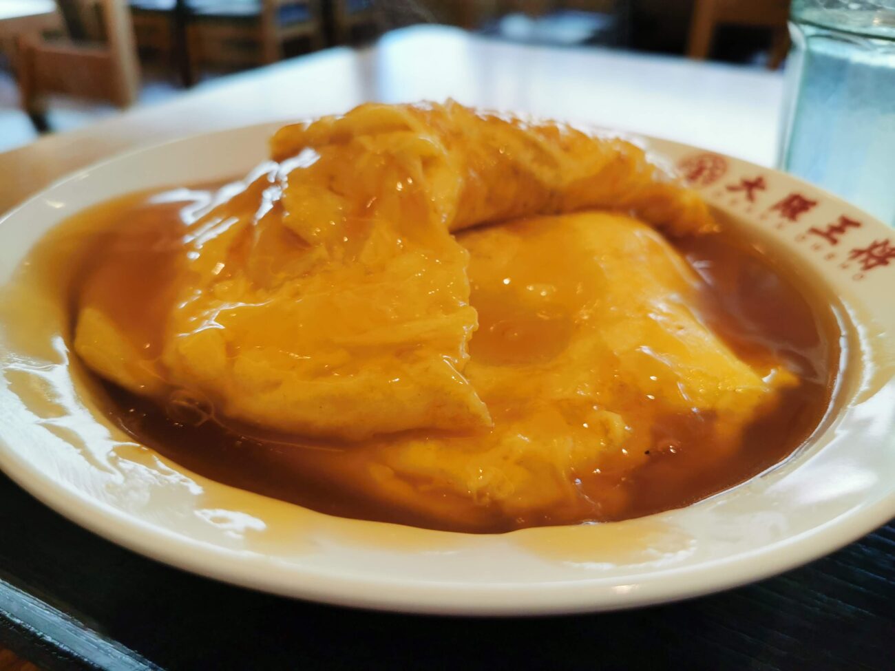 運ばれてきた「ふわとろ天津飯」、まず目を引くのがこの玉子のボリューム。